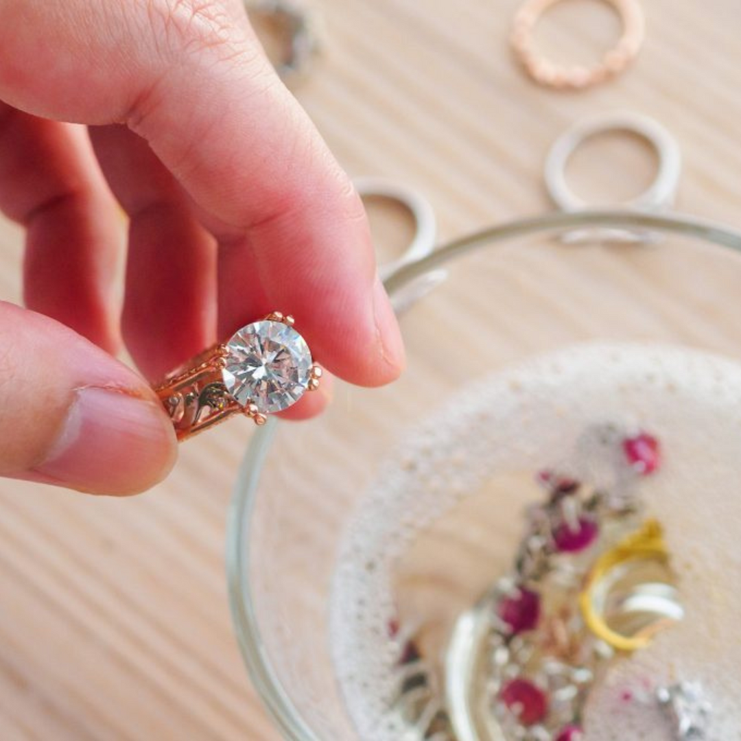 High‑quality jewellery, such as engagement rings and lab-grown diamond pieces, should be cleaned once or twice a month. Soak the jewellery in warm water with a few drops of mild dish soap or a trusted jewellery cleaner for 15–20 minutes, then gently brush it with a soft toothbrush. Pay close attention to the underside of stones where oil and dirt accumulate.