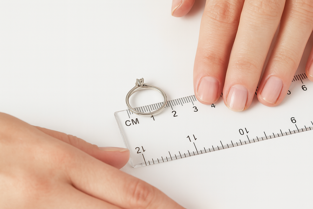 Step 1: Determine the diameter by placing a ring on the ruler and measuring the shortest distance between two points inside.