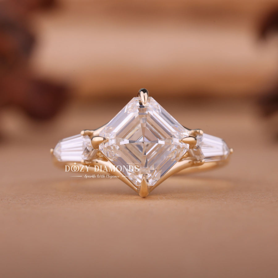 1.50CT-2.50CT Asscher E/VS1 Lab Created Three Stone Style Engagement Ring