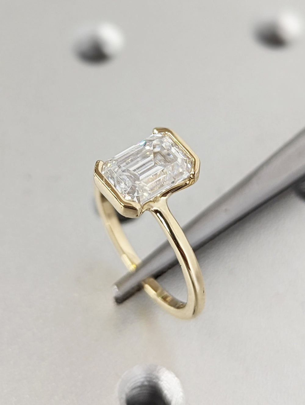 1.50CT Emerald Cut Half Bezel Lab Grown Diamond Engagement Ring For Her