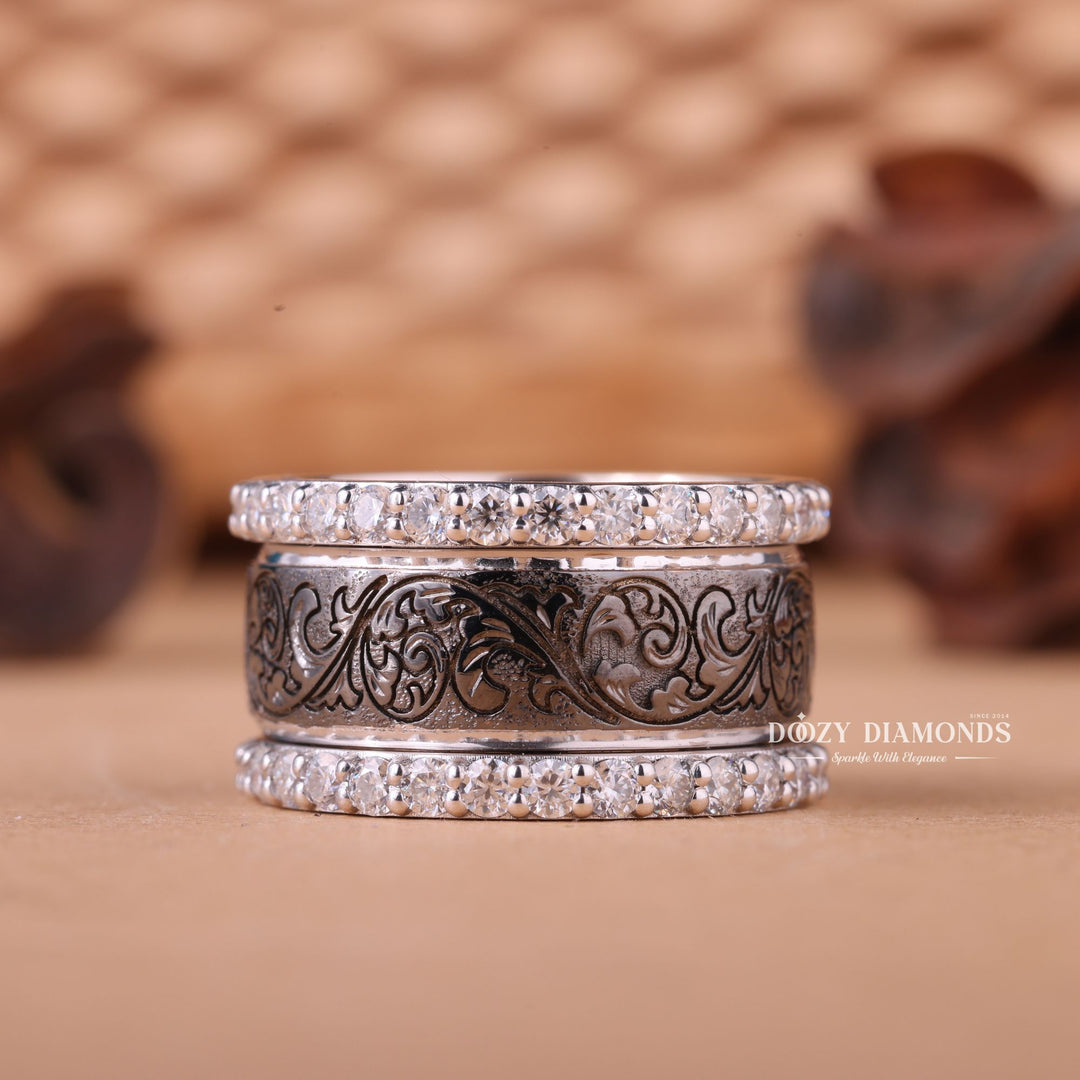 Round Cut Moissanite Diamond Crown Wedding Band in Solid Gold