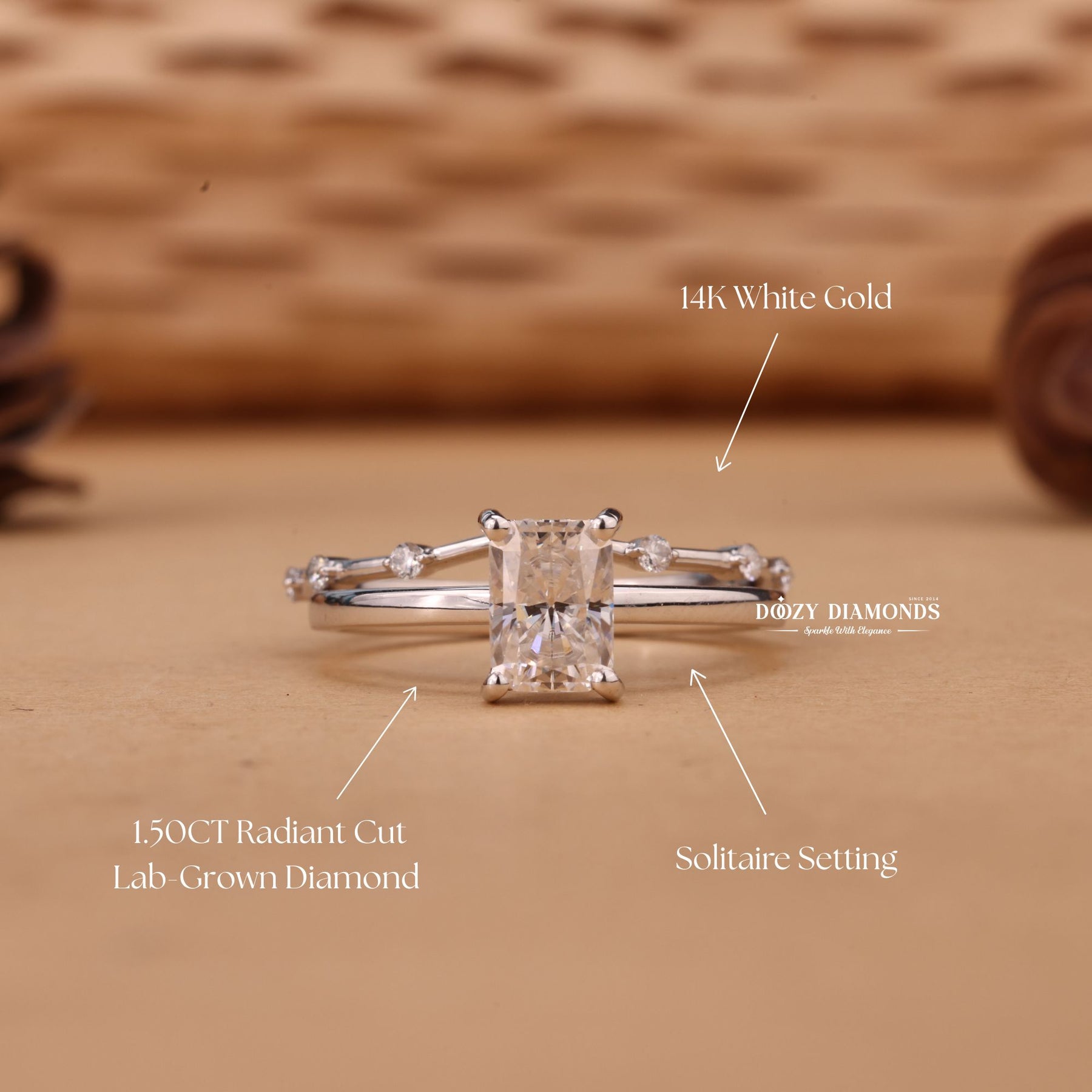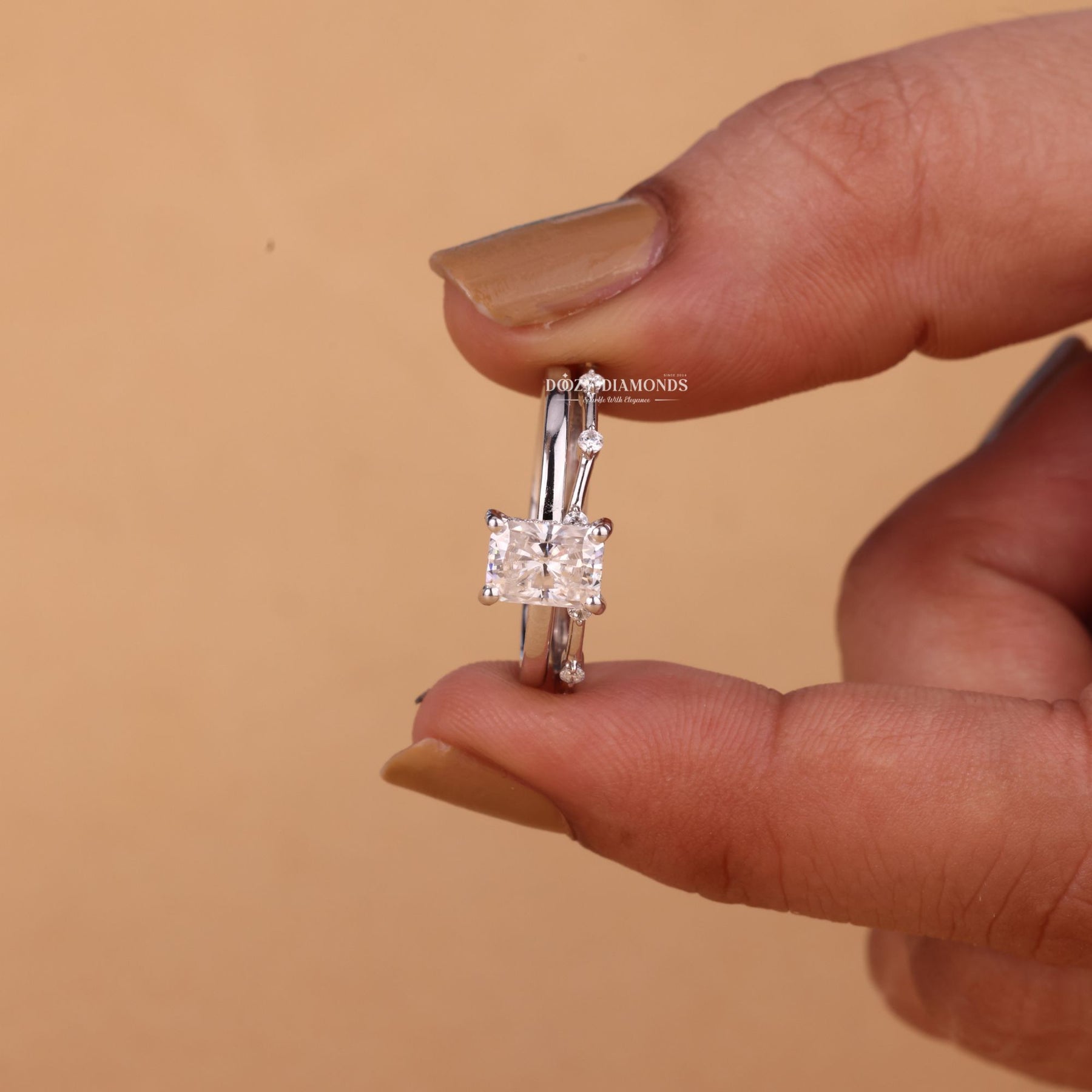 1.0CT Radiant Cut EF-VS2 Lab Grown Solitaire Engagement Ring with Stac