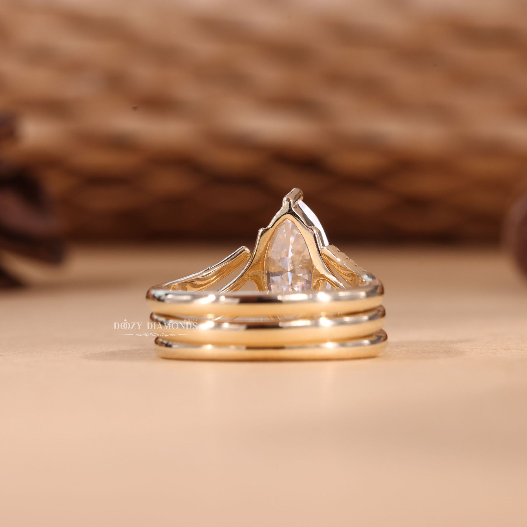 2.0CT Marquise Cut EF-VS2 Lab Grown Eve Diamond Ring with Curved Wedding Band or Plain Band
