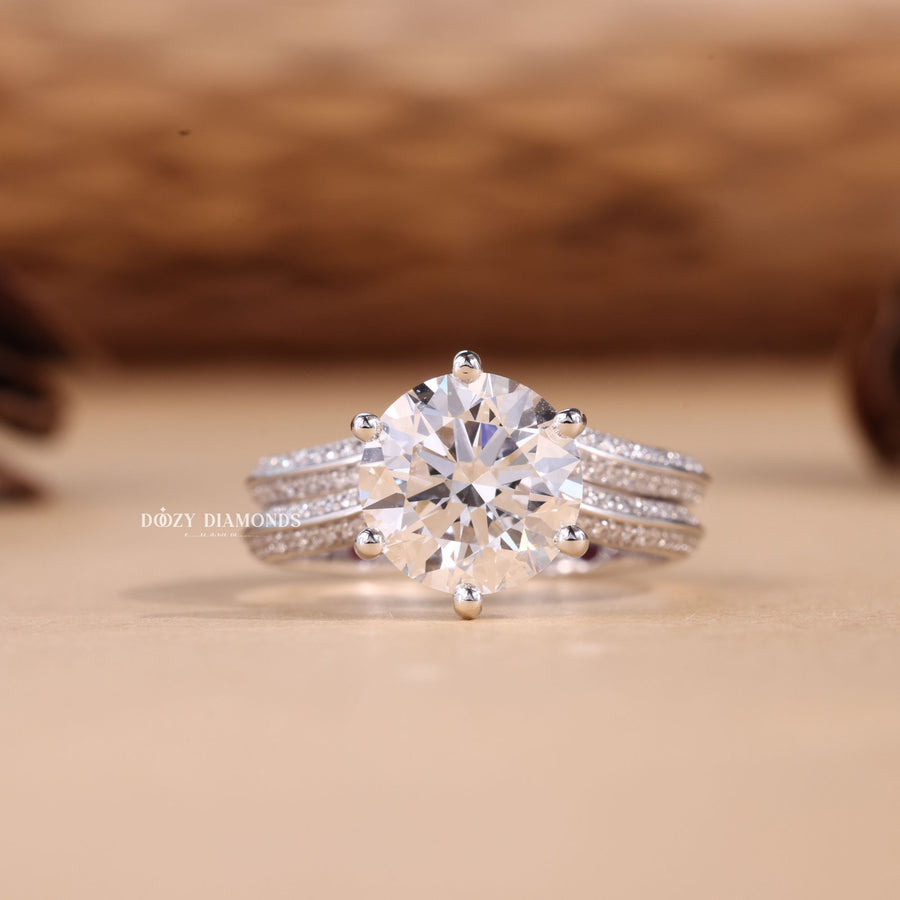 1.50CT Round Cut Twig F-VS Lab Grown Diamond Engagement Ring Set