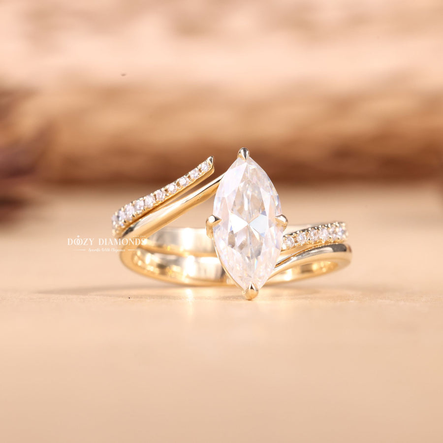 3.0CT Antique Cut Moval F-VS Lab Grown Unique Claw Diamond Bridal Ring Set