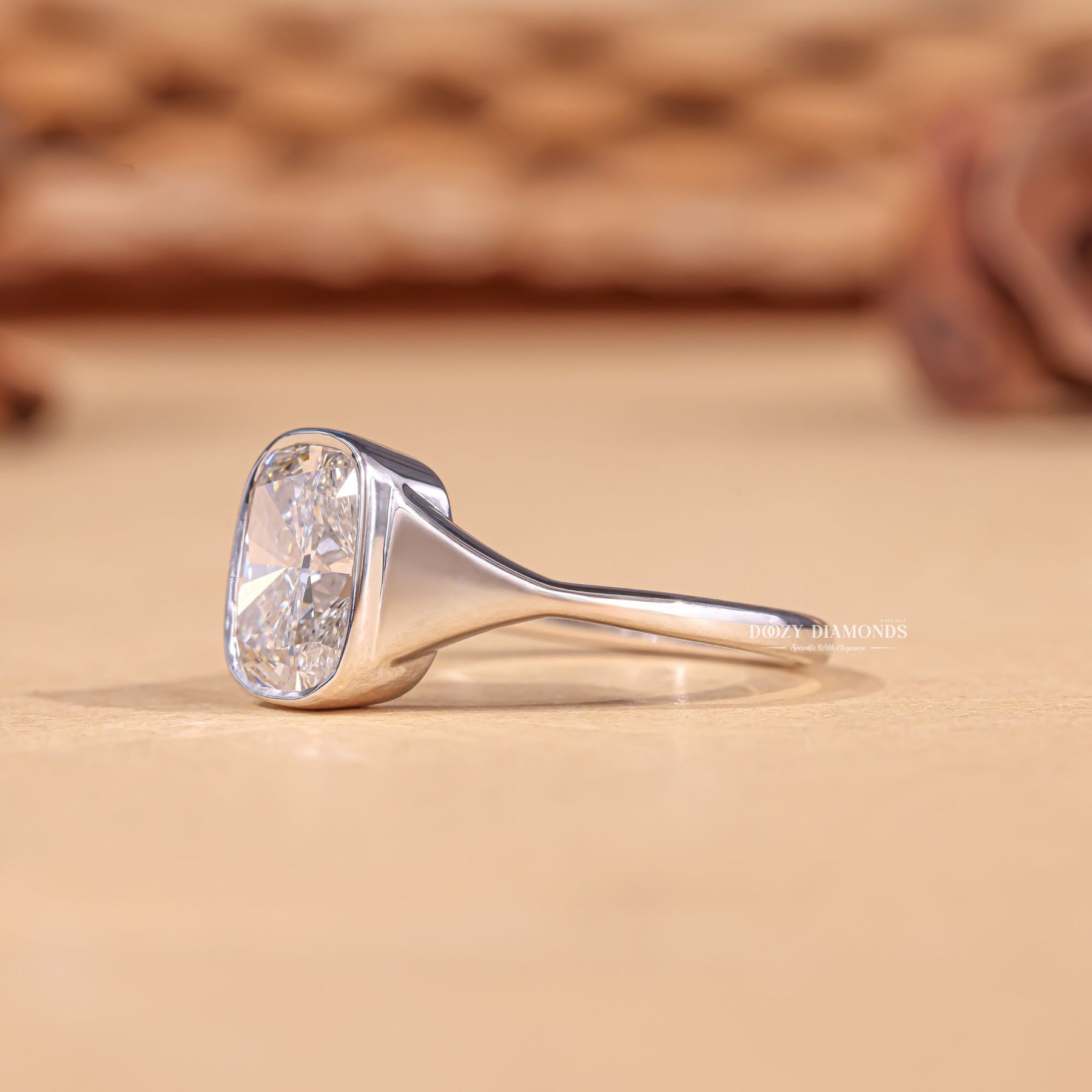 3.0CT-5.0CT Bezel Set Cushion FE/VS2 Lab Grown Diamond Engagement Ring