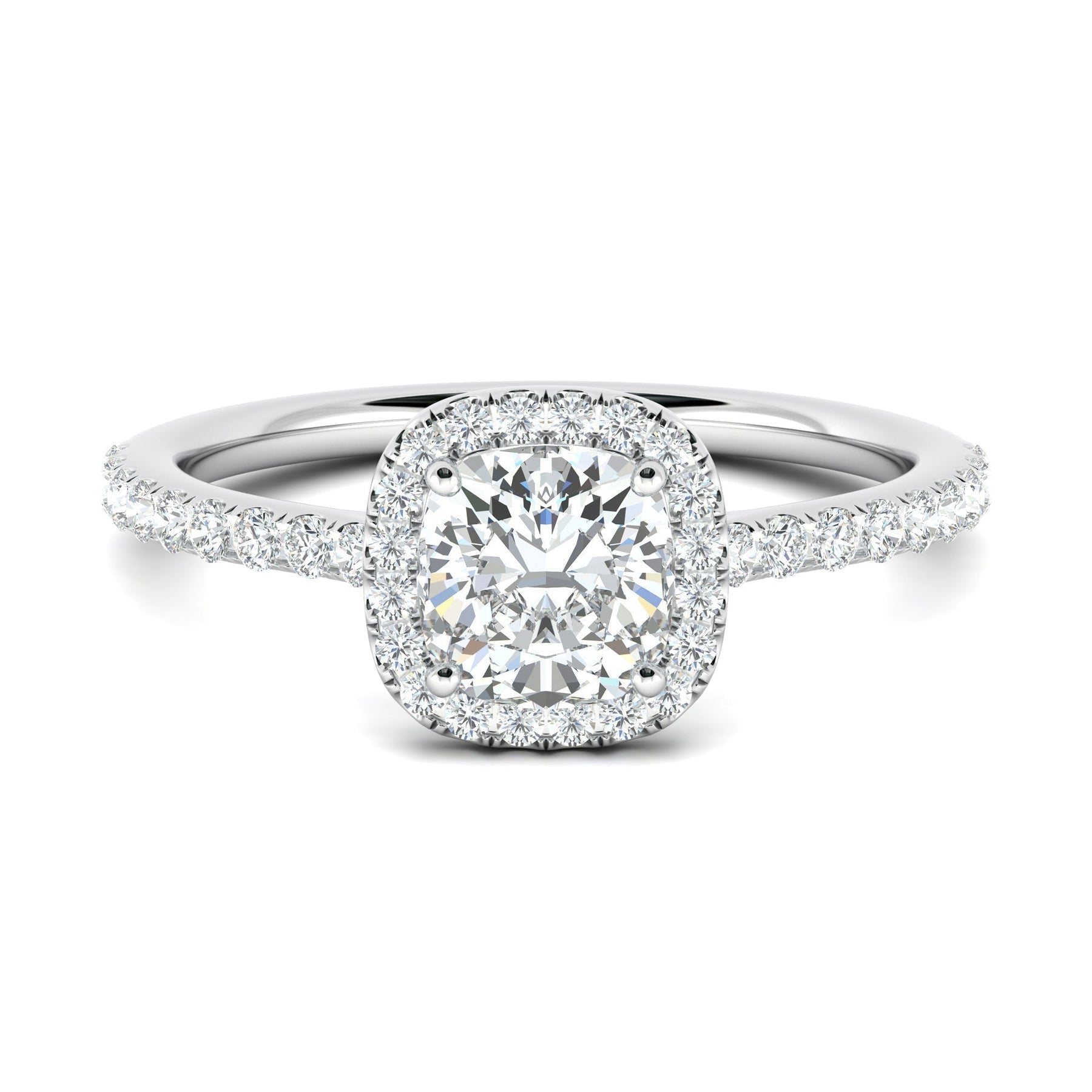 0.76 CT Cushion F- VS1 Diamond Halo & Pave Setting Engagement Ring