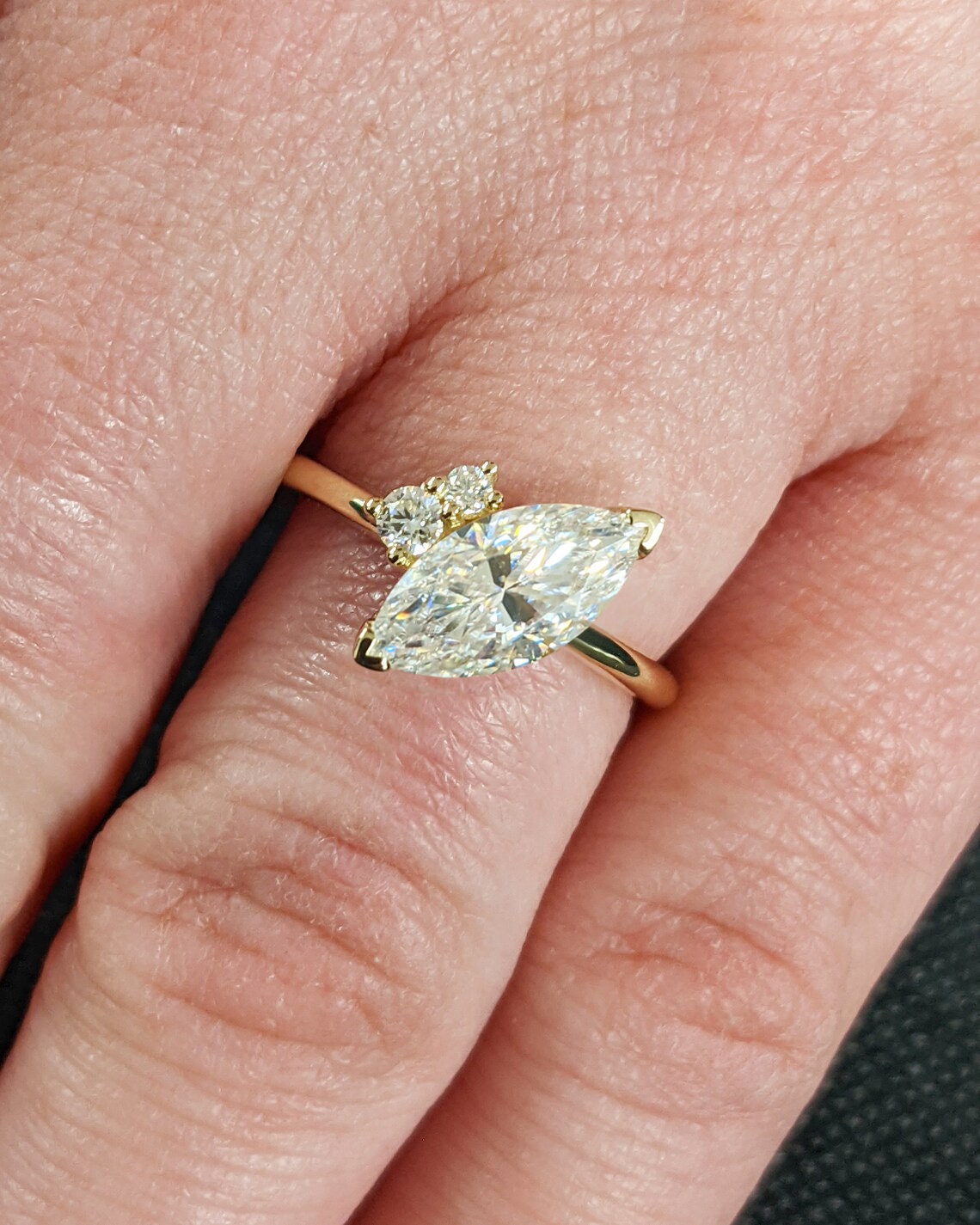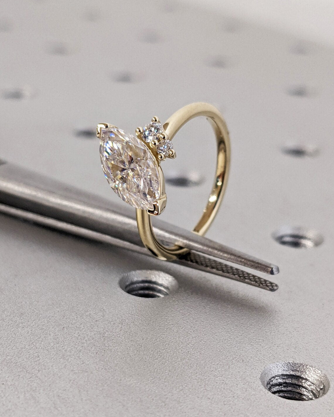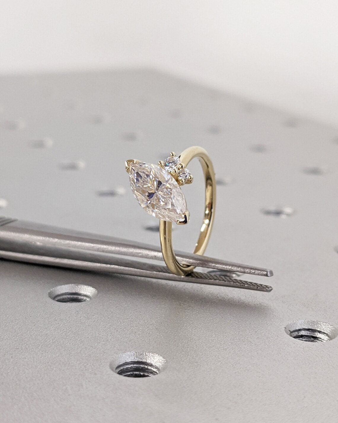 1.0CT Asymmetrical Marquise Cut Cluster Lab Grown Diamond Engagement Ring For Women