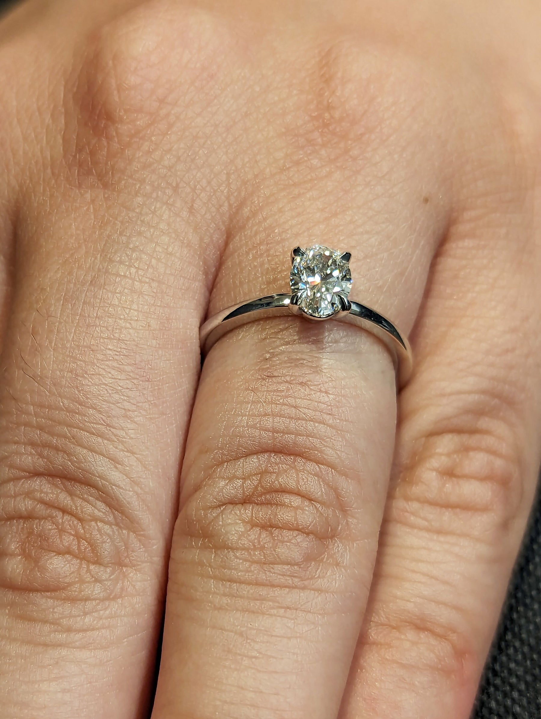 1.0CT Oval Cut Solitaire Lab Grown Diamond Engagement Ring Minimalist Wedding Ring