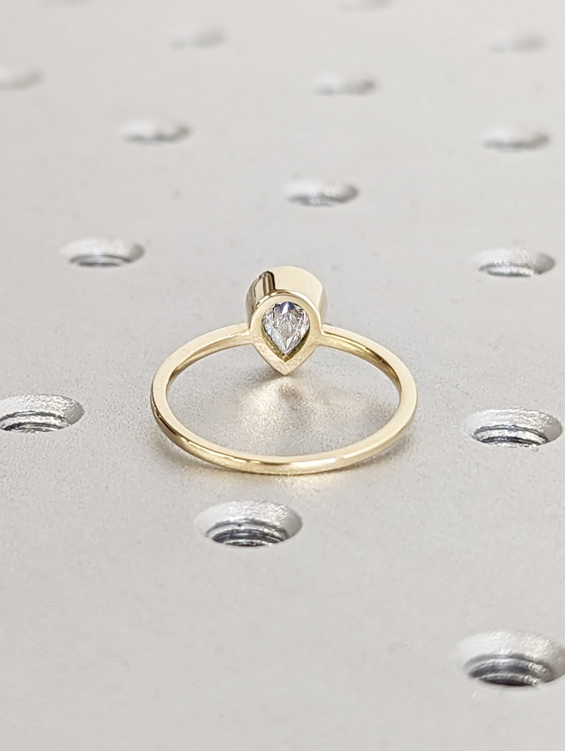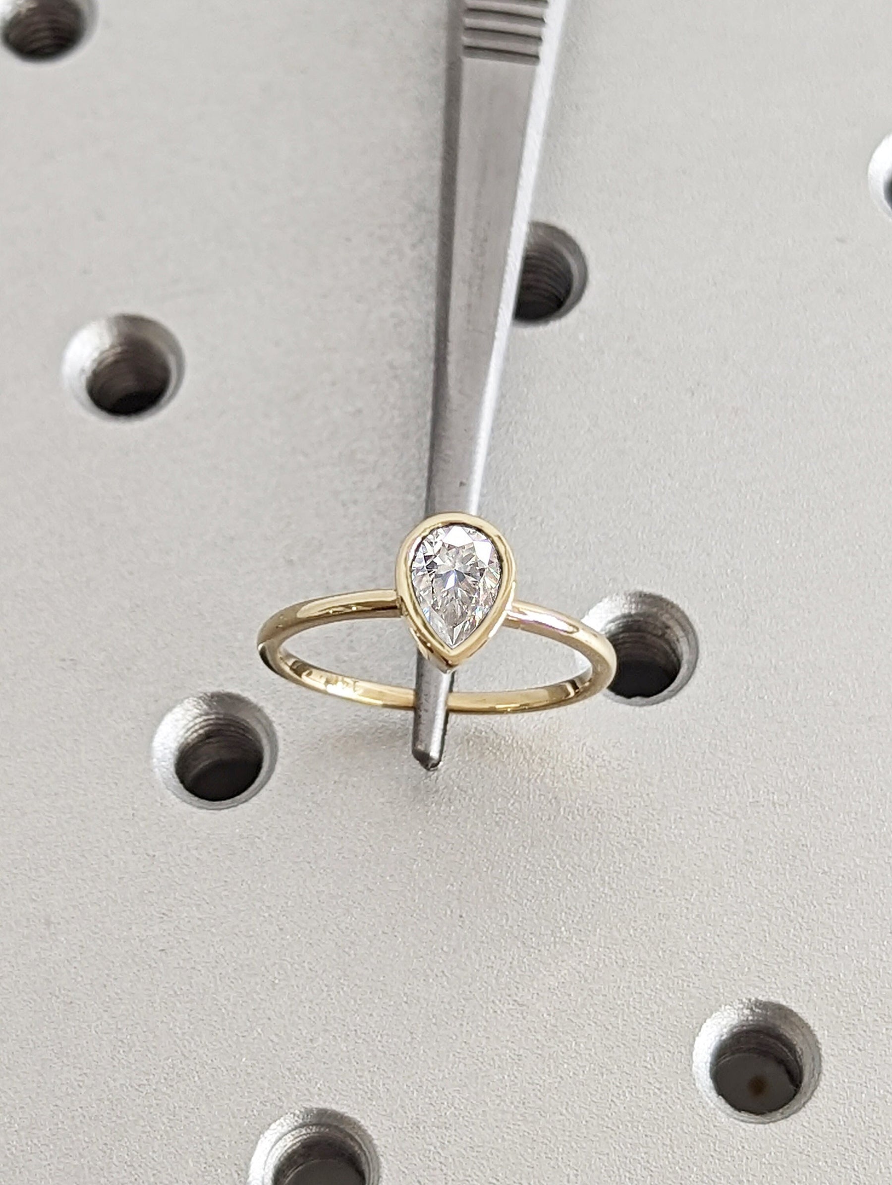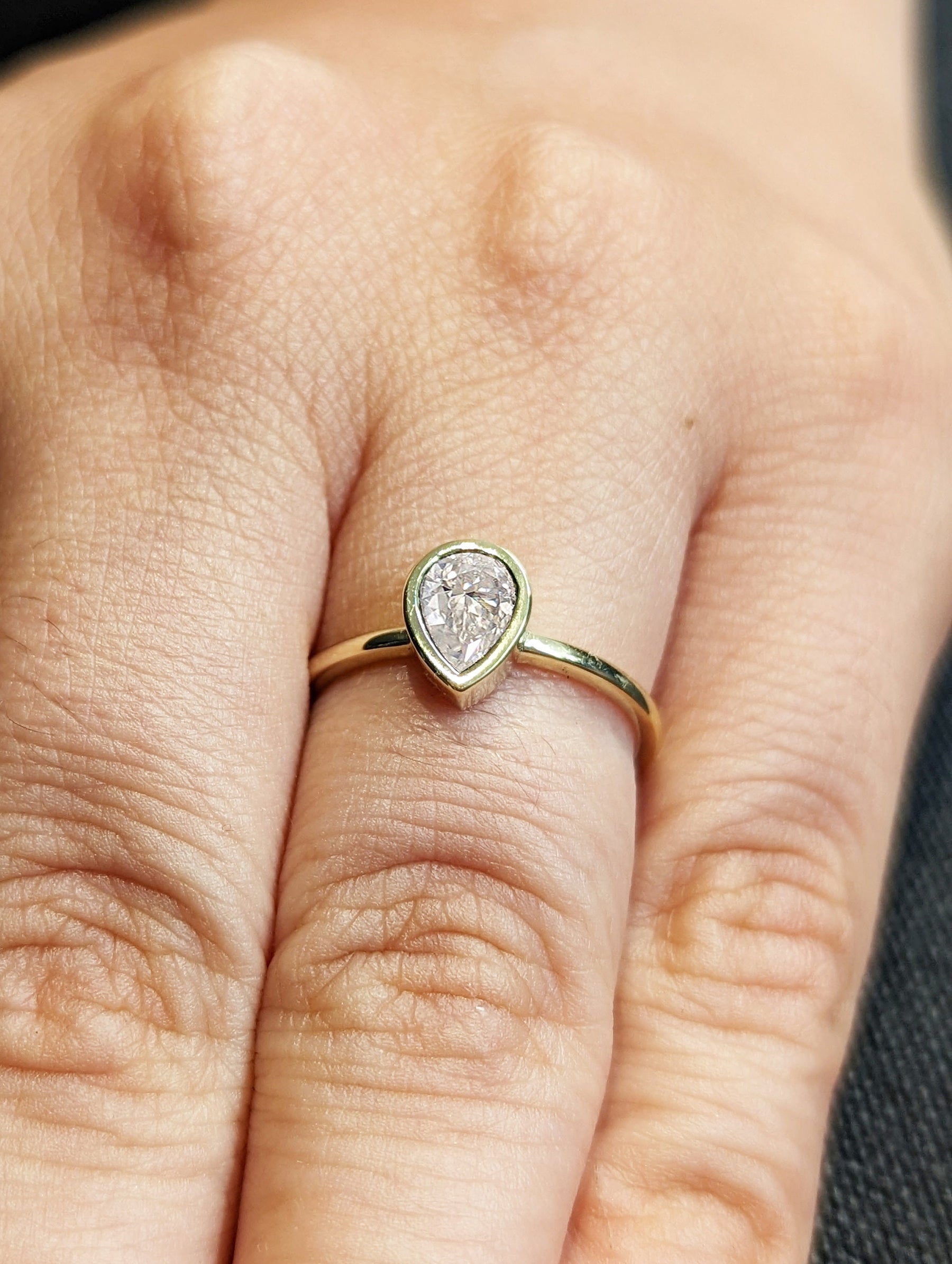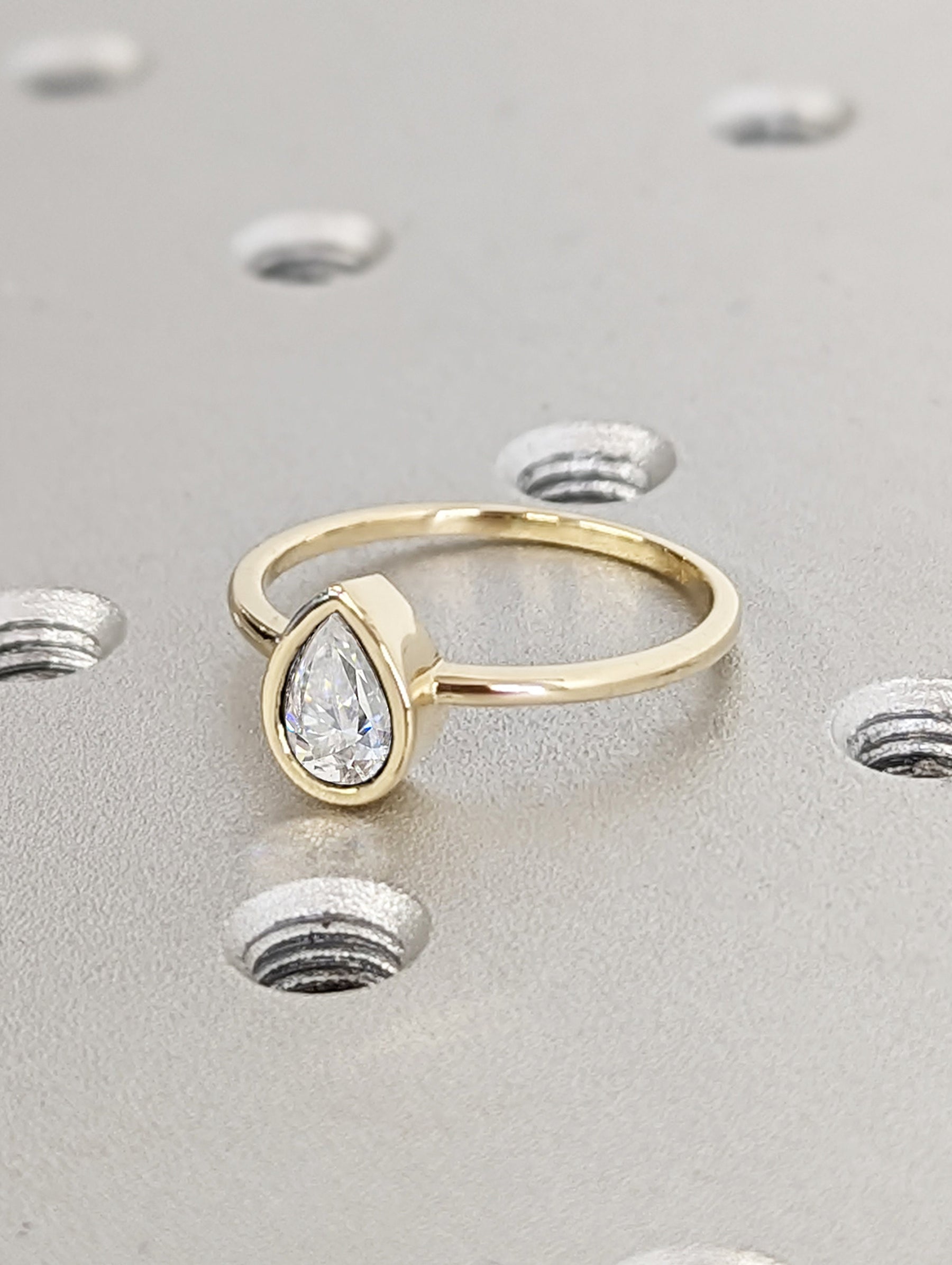 1.0CT Pear Cut Bezel Set Lab Grown Diamond Engagement Ring For Women