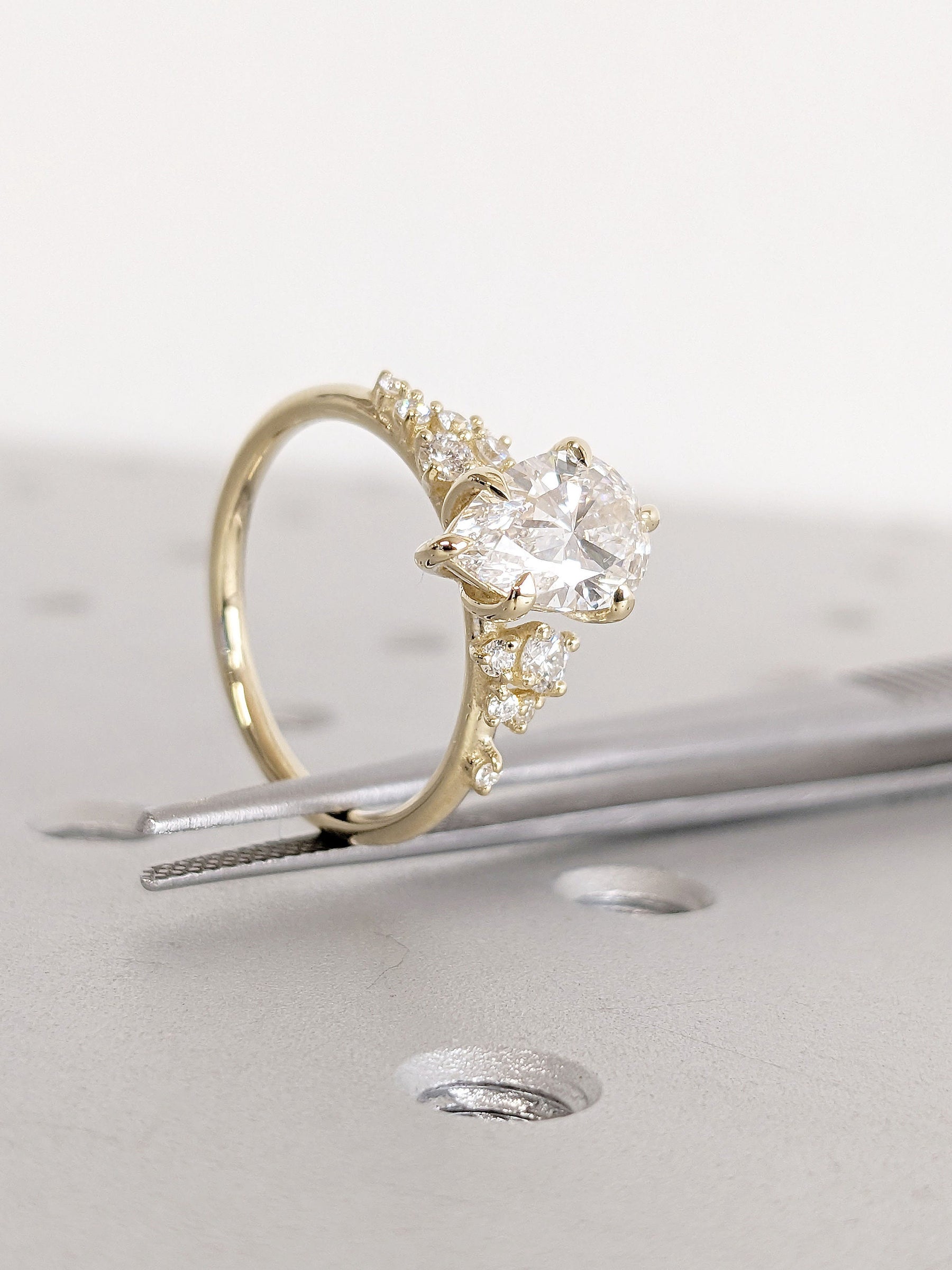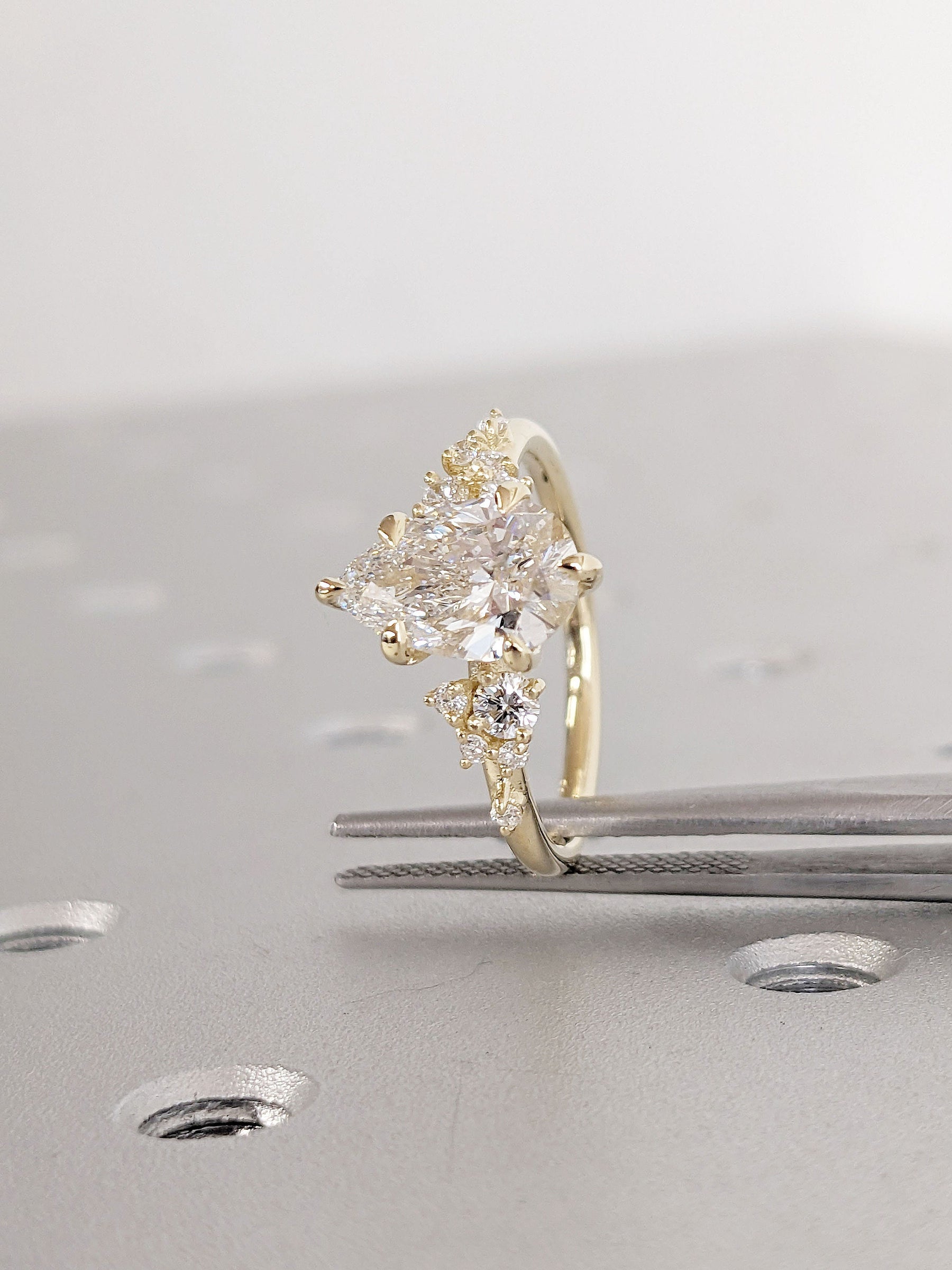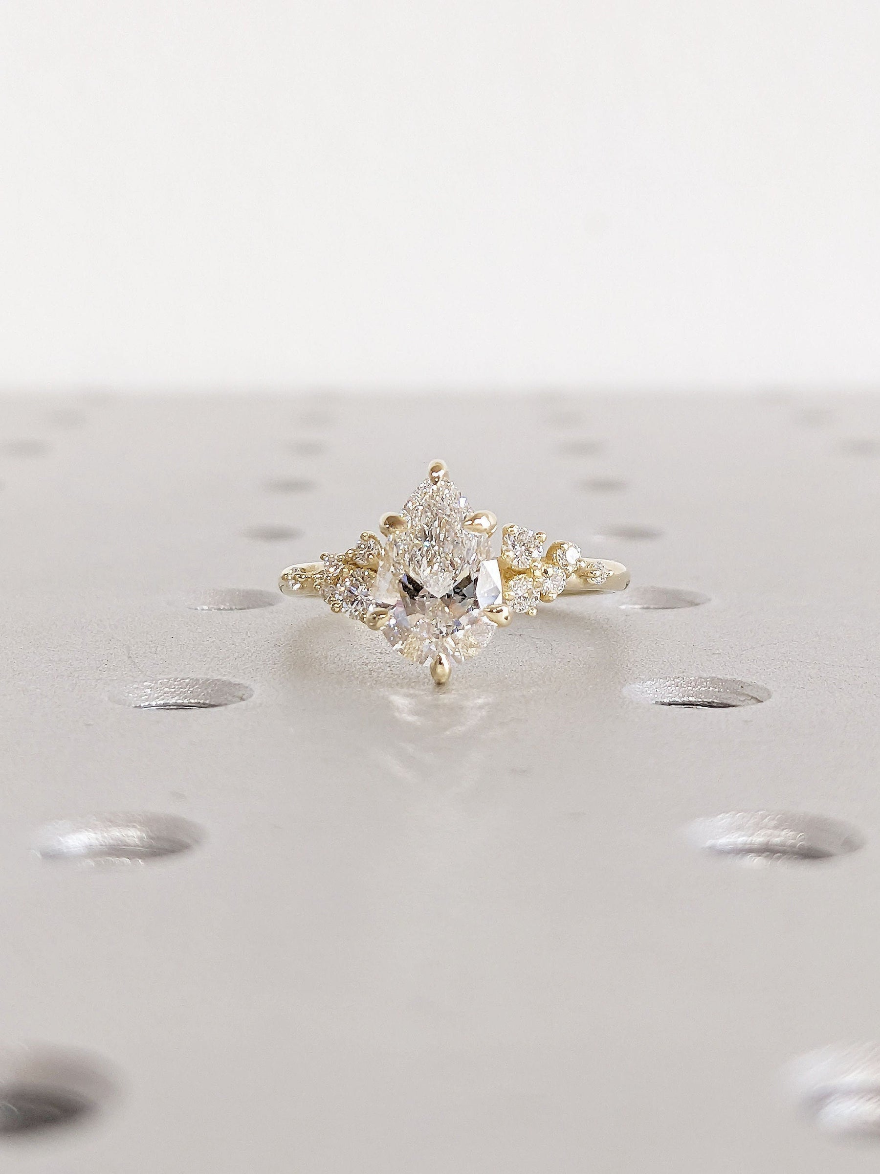 1.50CT Pear Cut Cluster Lab Grown Diamond Engagement Ring For Women