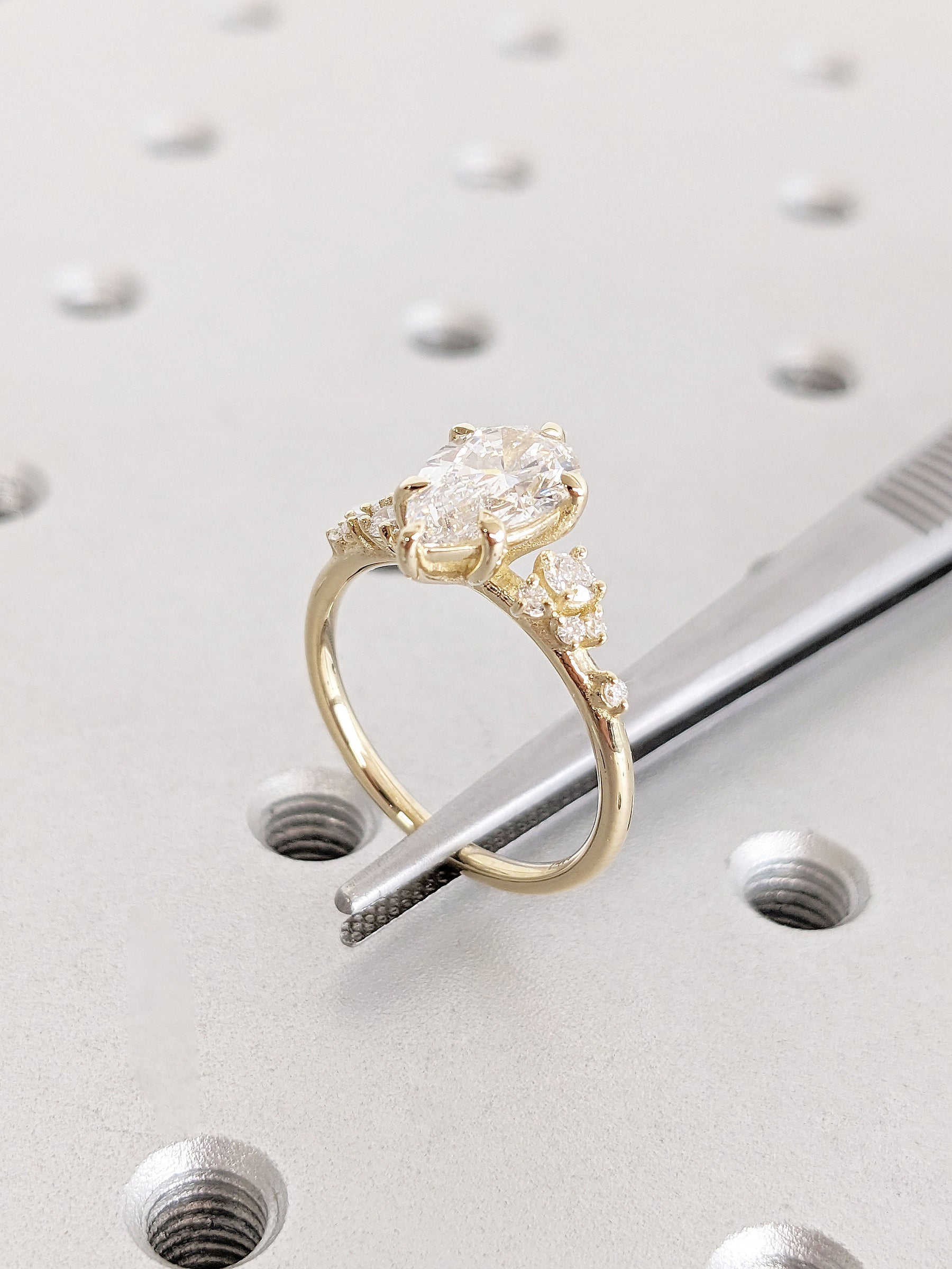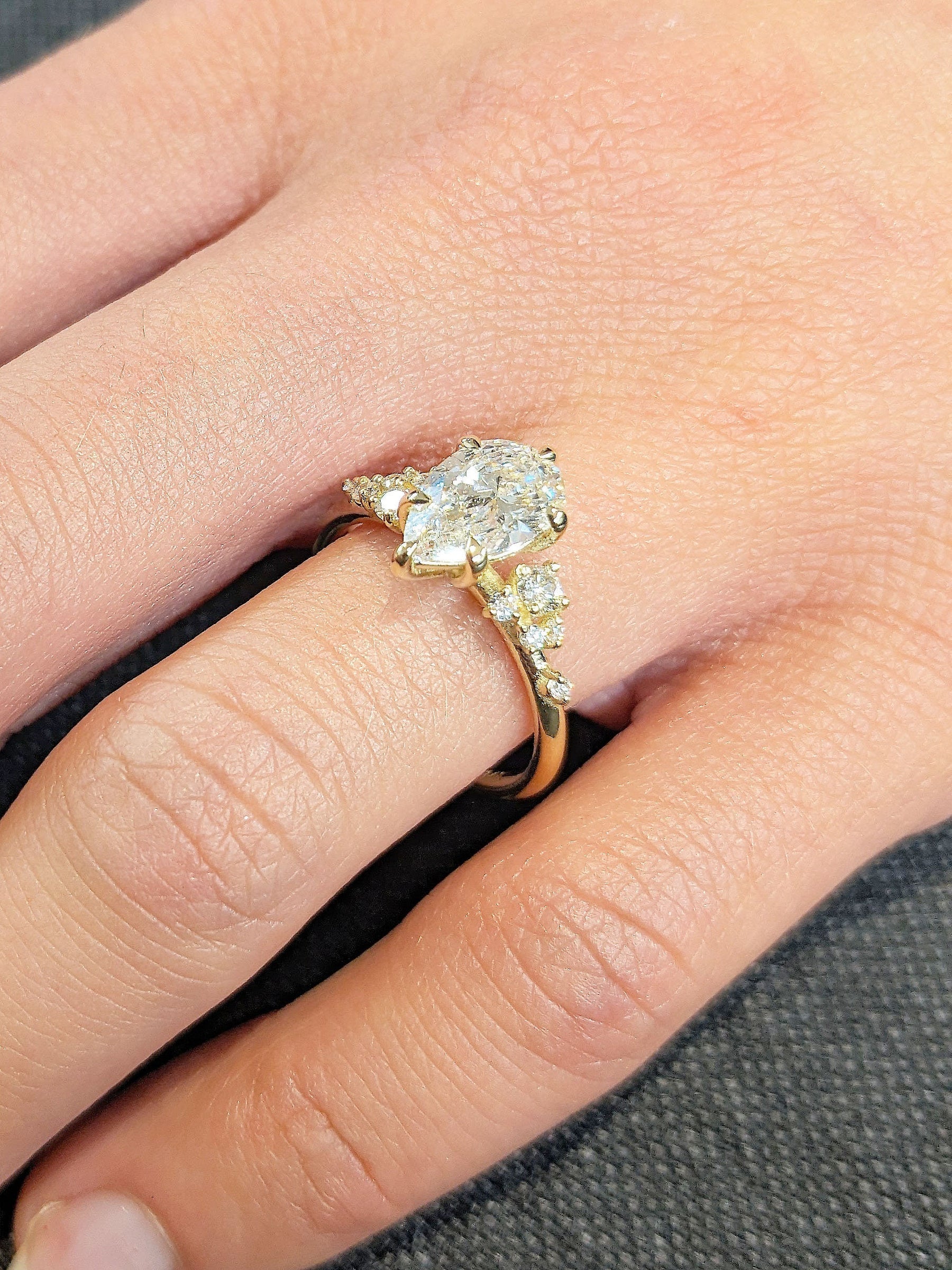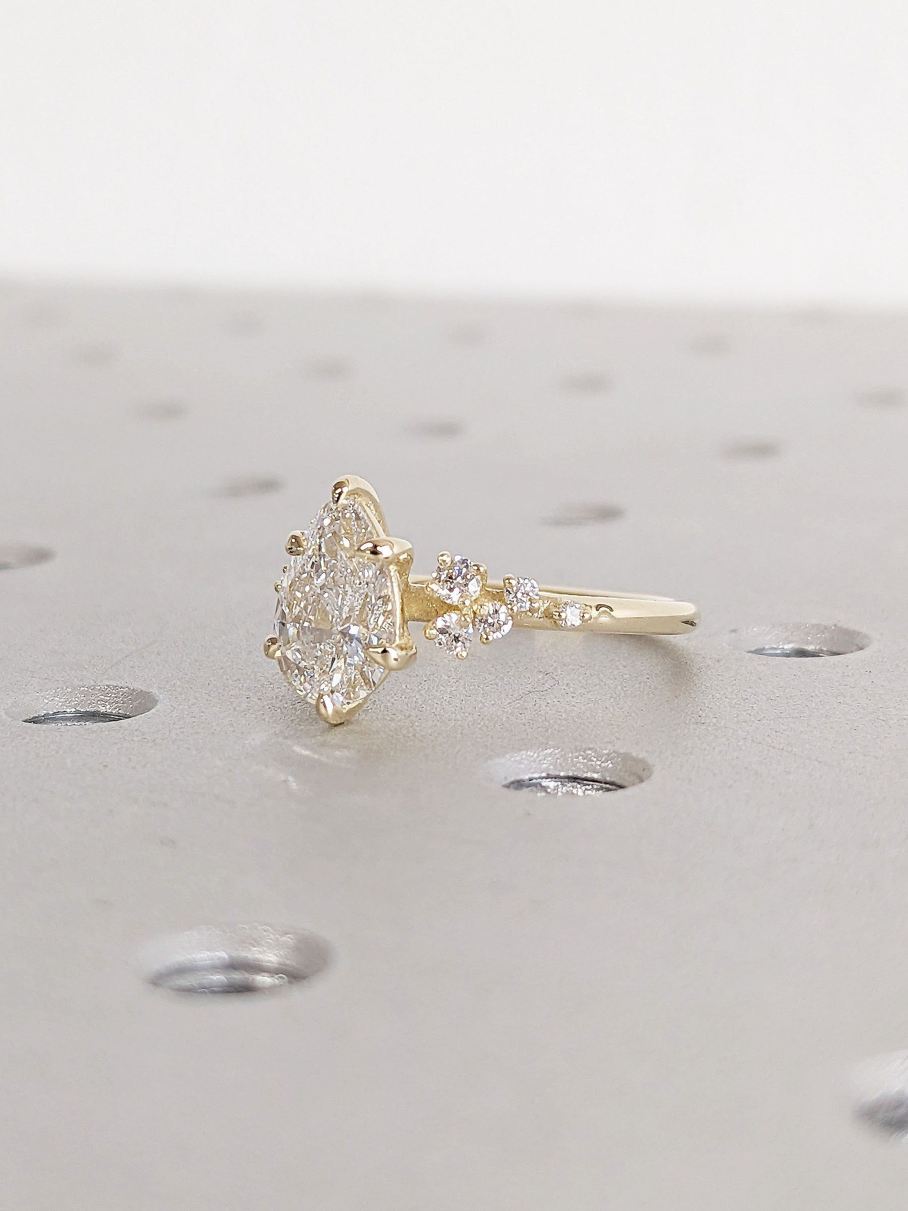 1.50CT Pear Cut Cluster Lab Grown Diamond Engagement Ring For Women