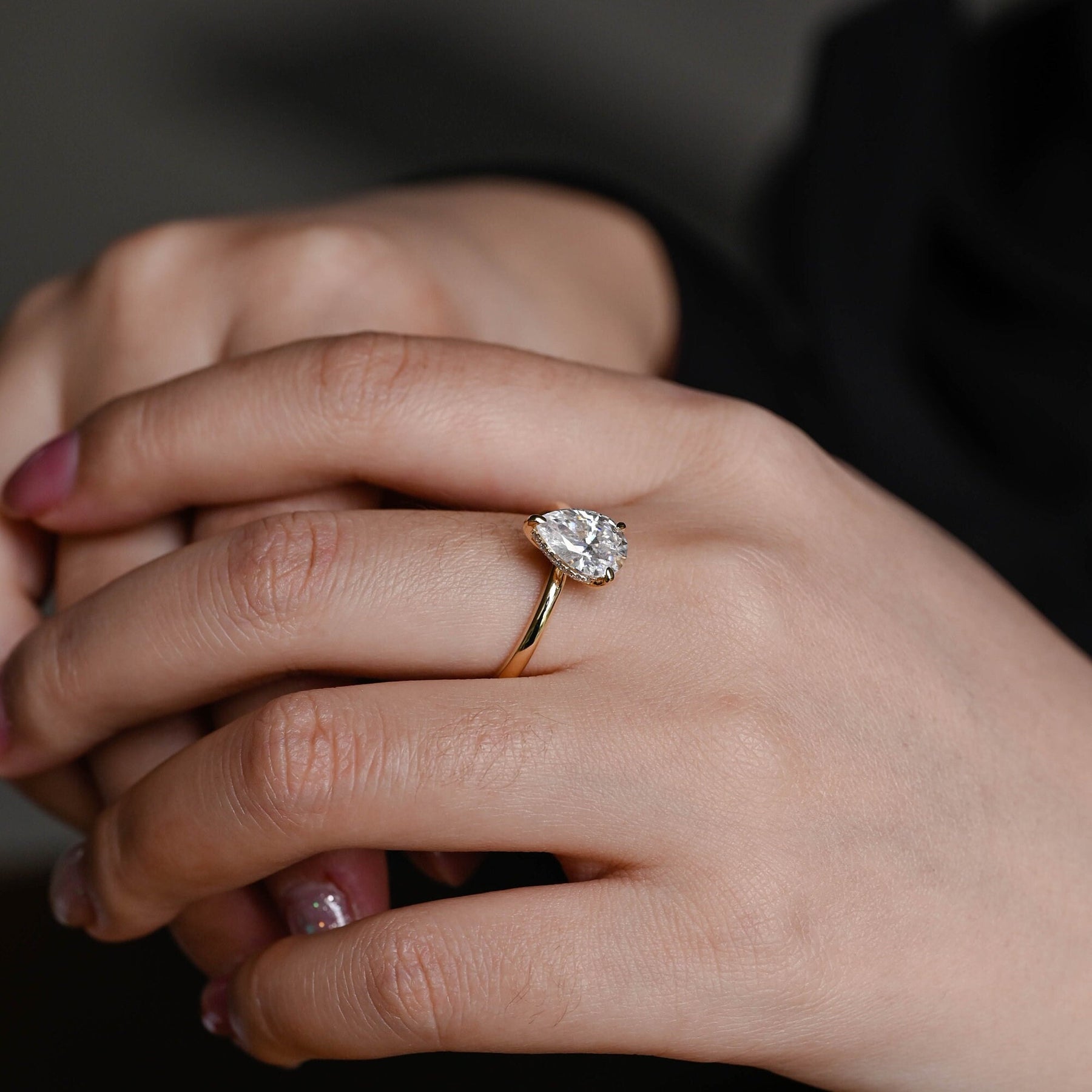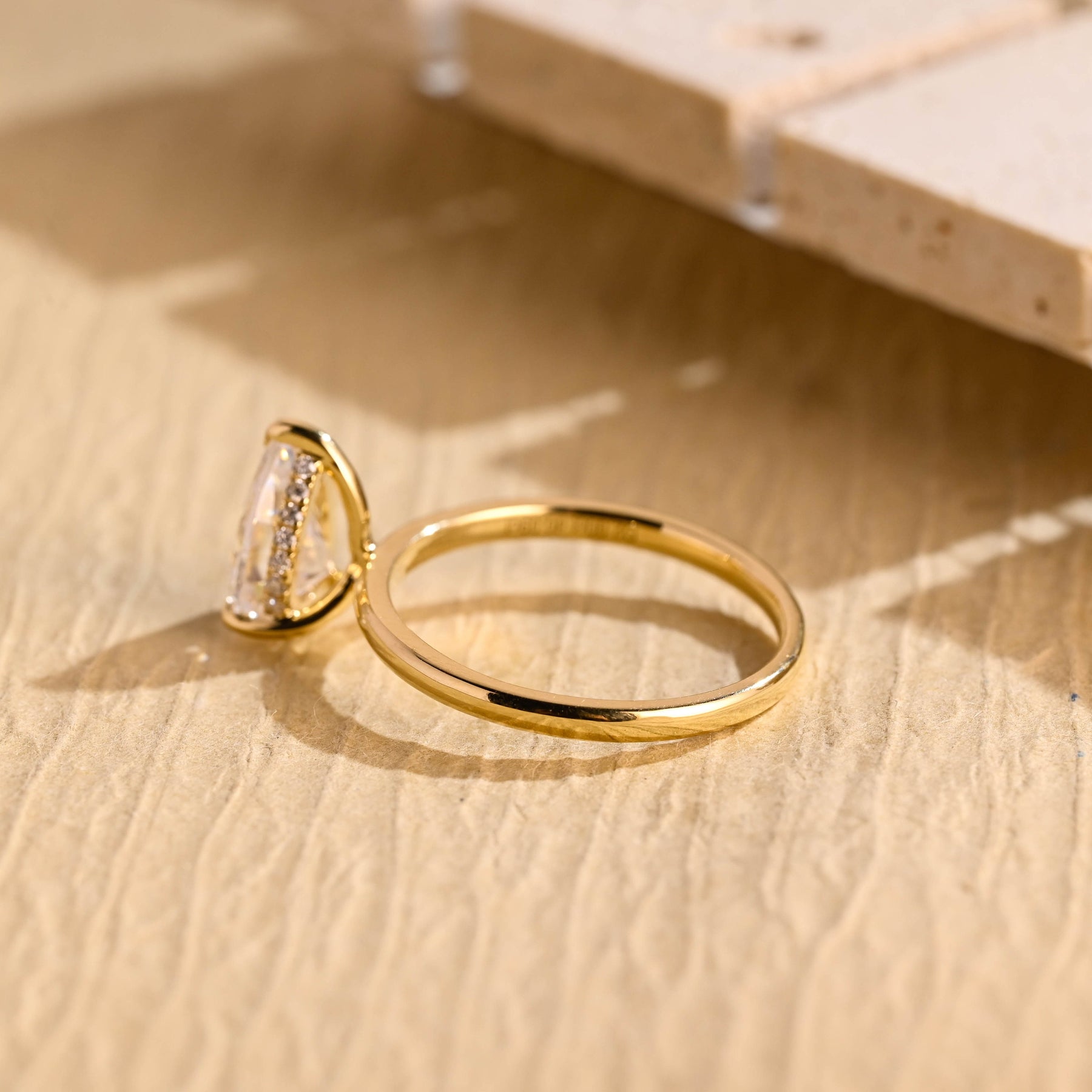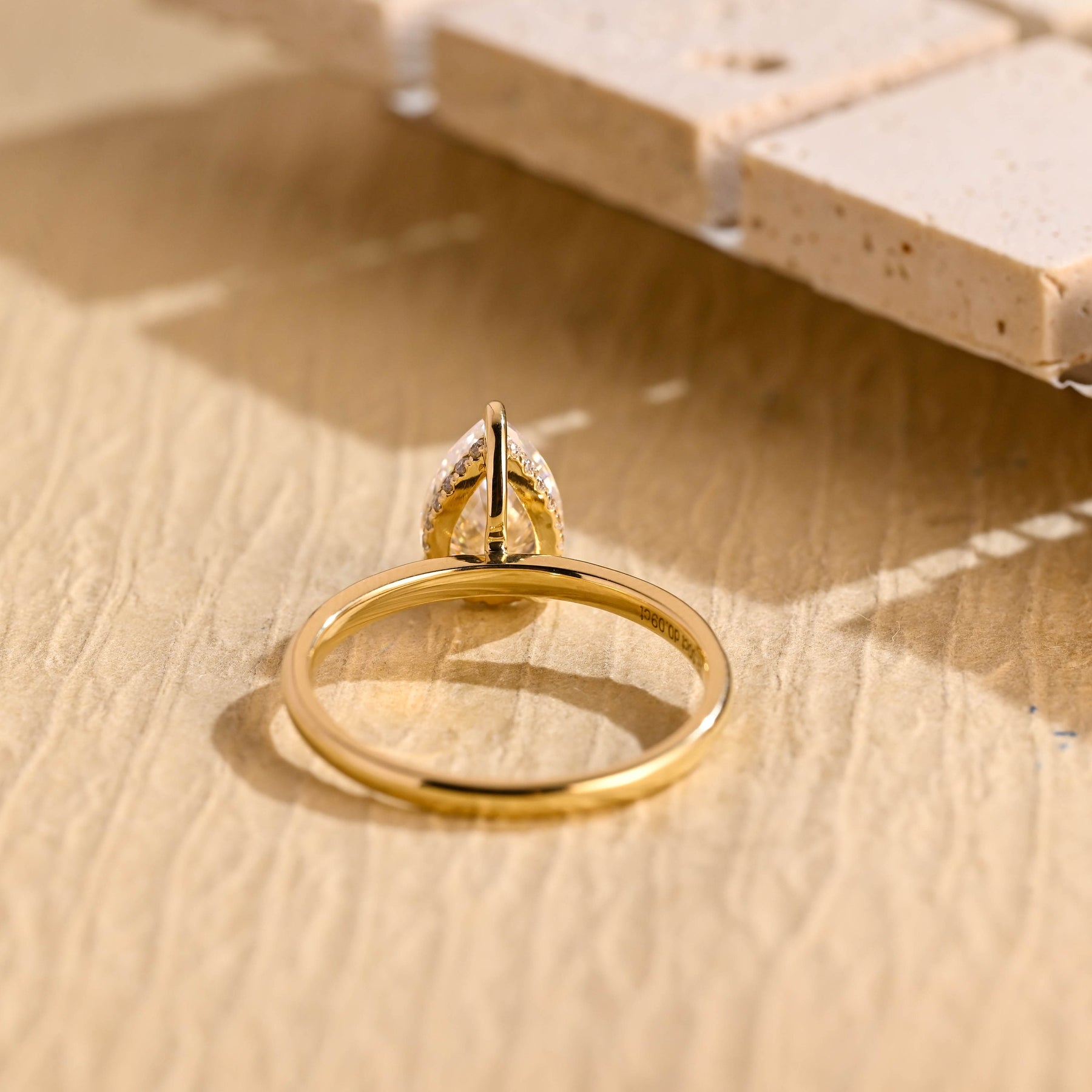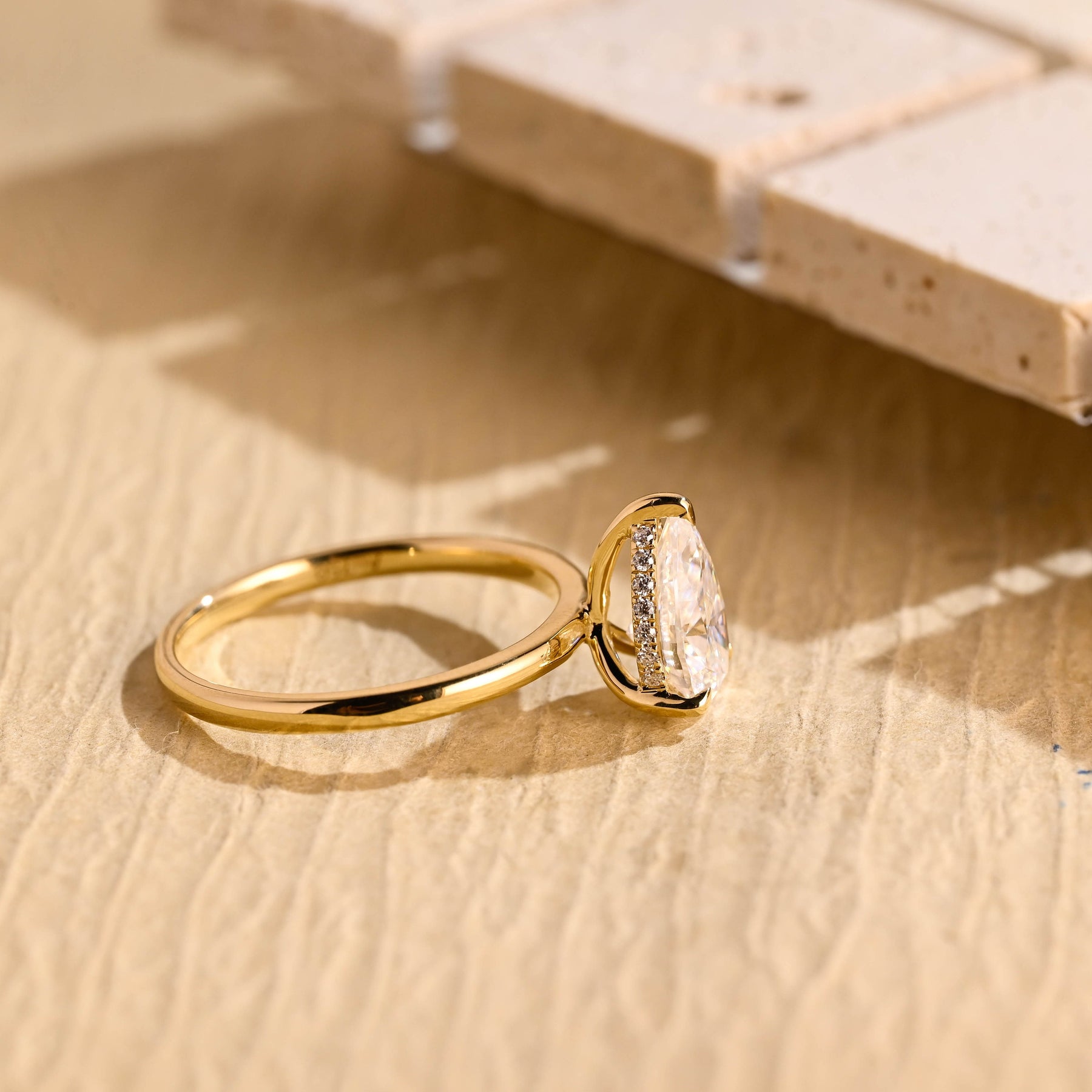 1.0CT Pear Cut Lab Grown Diamond Hidden Halo Engagement Ring For Women