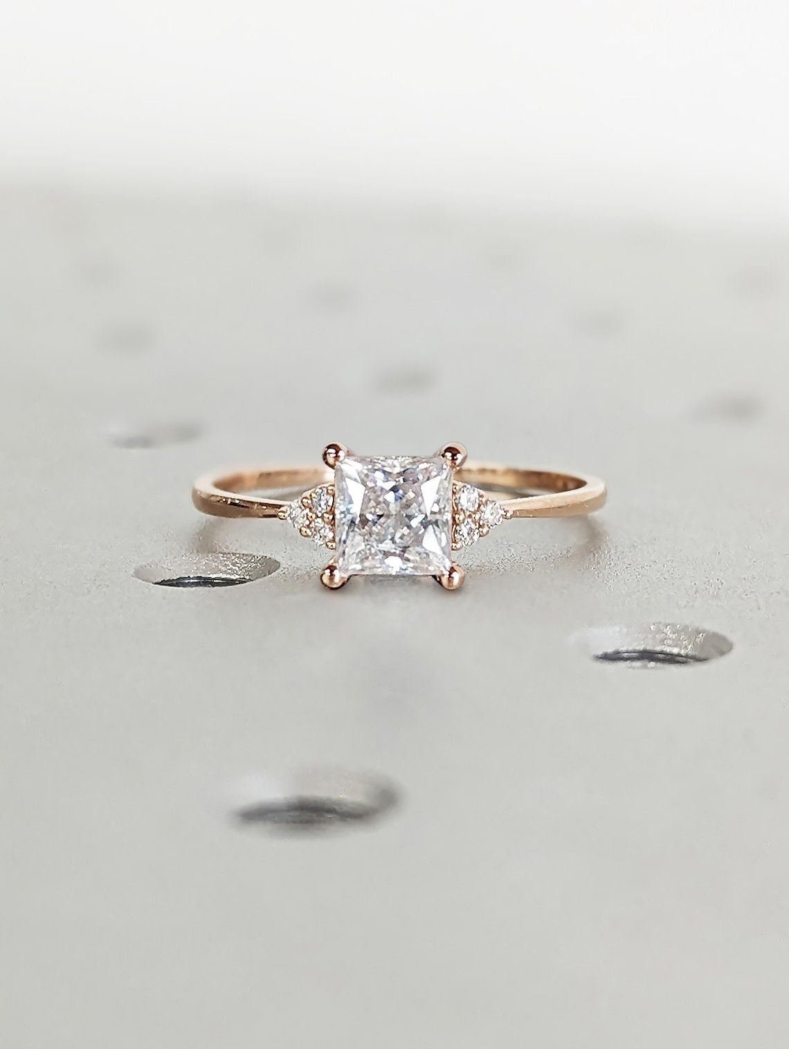 1.0CT Princess Cut Cluster Lab Grown Diamond Engagement Ring For Women