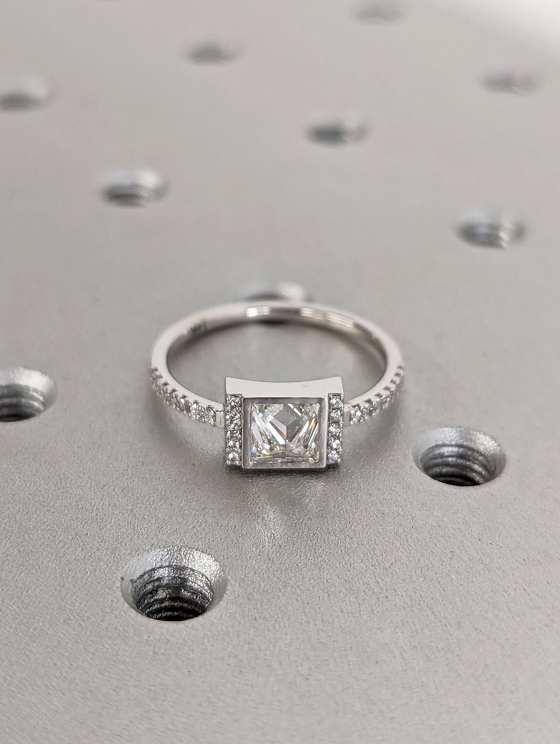 1.0CT Princess Cut Pave Lab Grown Diamond Unique Engagement Ring 14k White Gold