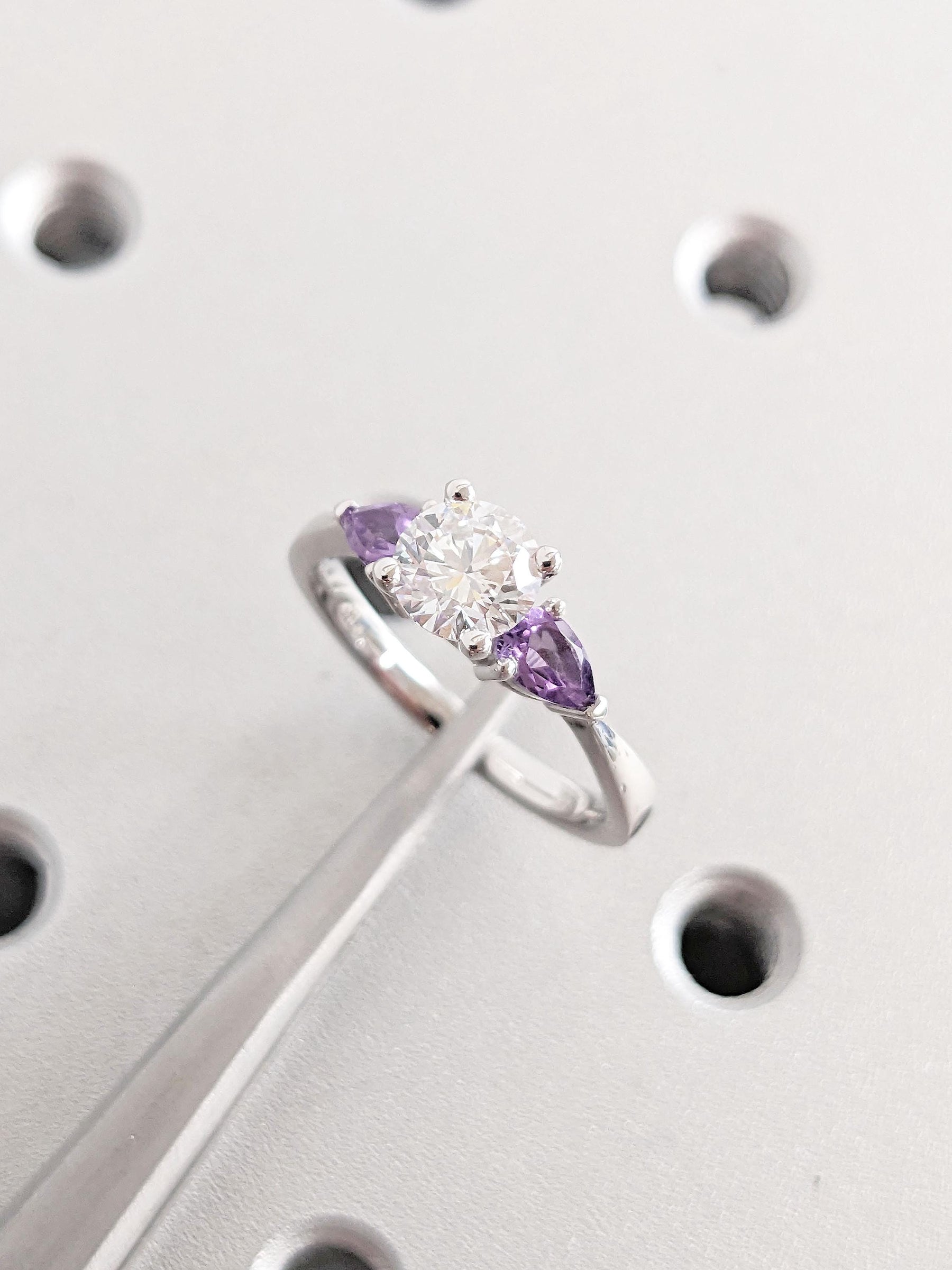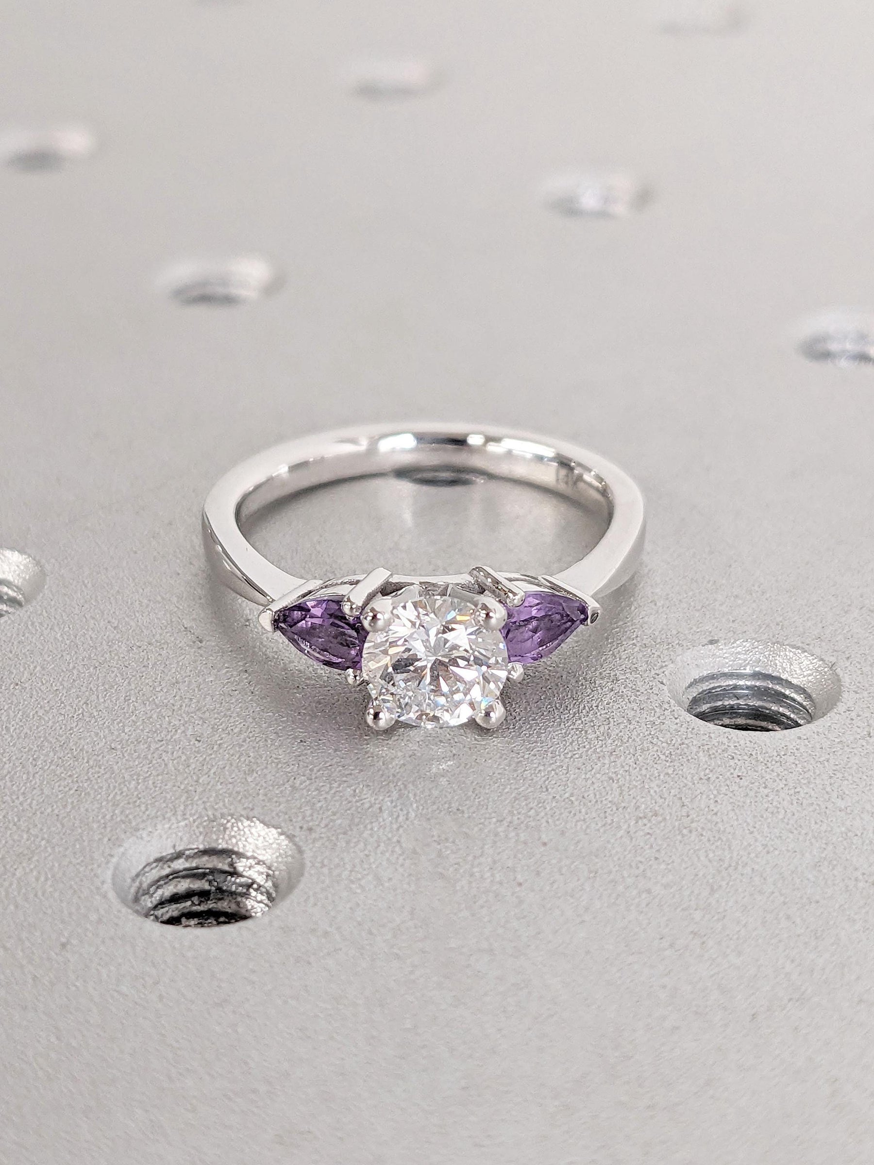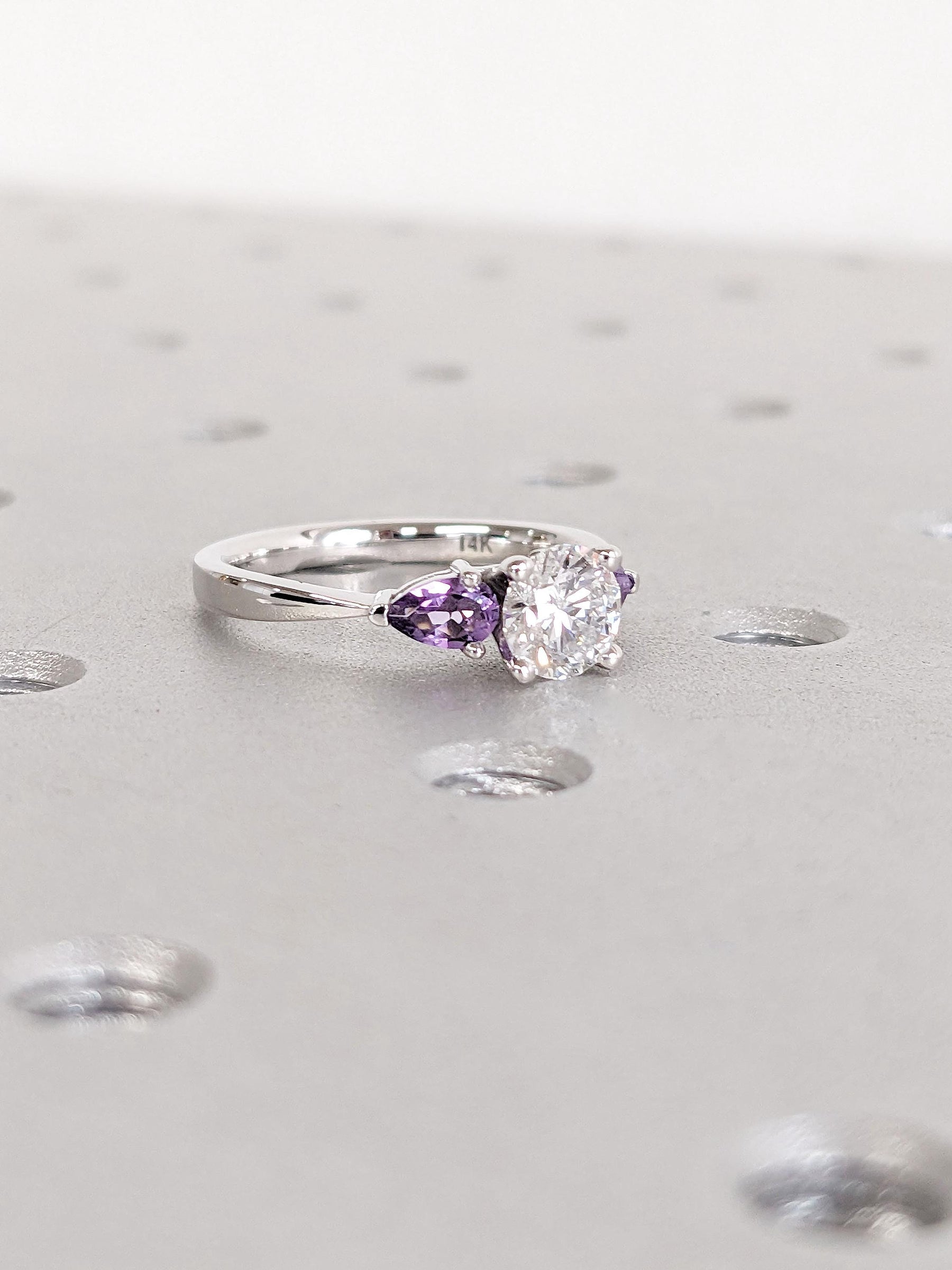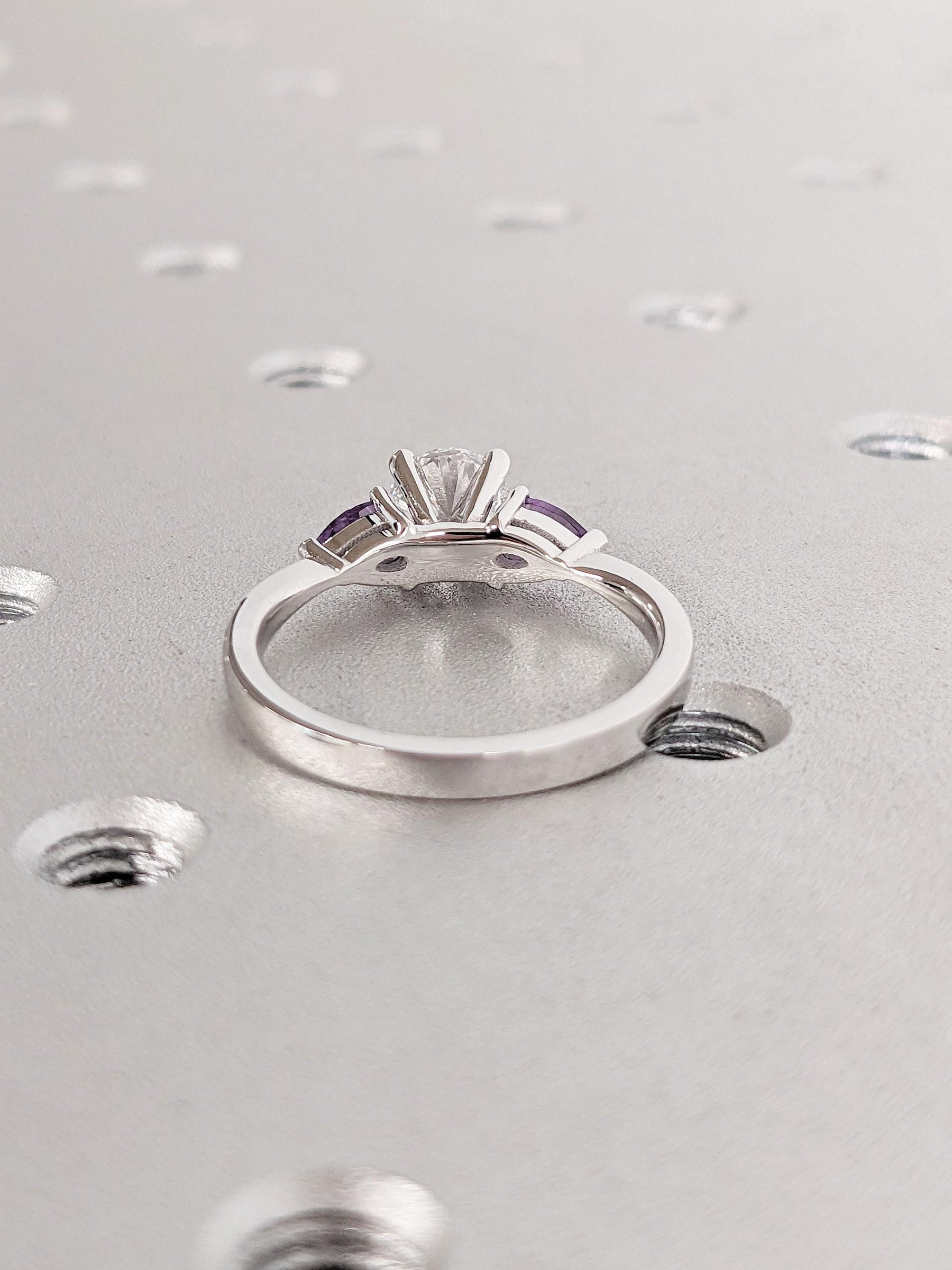 ✧ Yes, most of our designs can be customized to suit your taste and lifestyle, as an example Moissanite can be replaced with Diamond, Sapphires or Emeralds, prong styles can be changes from traditional to claw. Simple design changes will add a extra minimal fee, if the ring design changes in a more significant way like two rings put together, larger or smaller stones are required, a design element is added or removed or if a design image is required, there will be additional charges, or the design may be considered custom at the designer's discretion. Contact Us to discuss the possibilities or to request a quote.