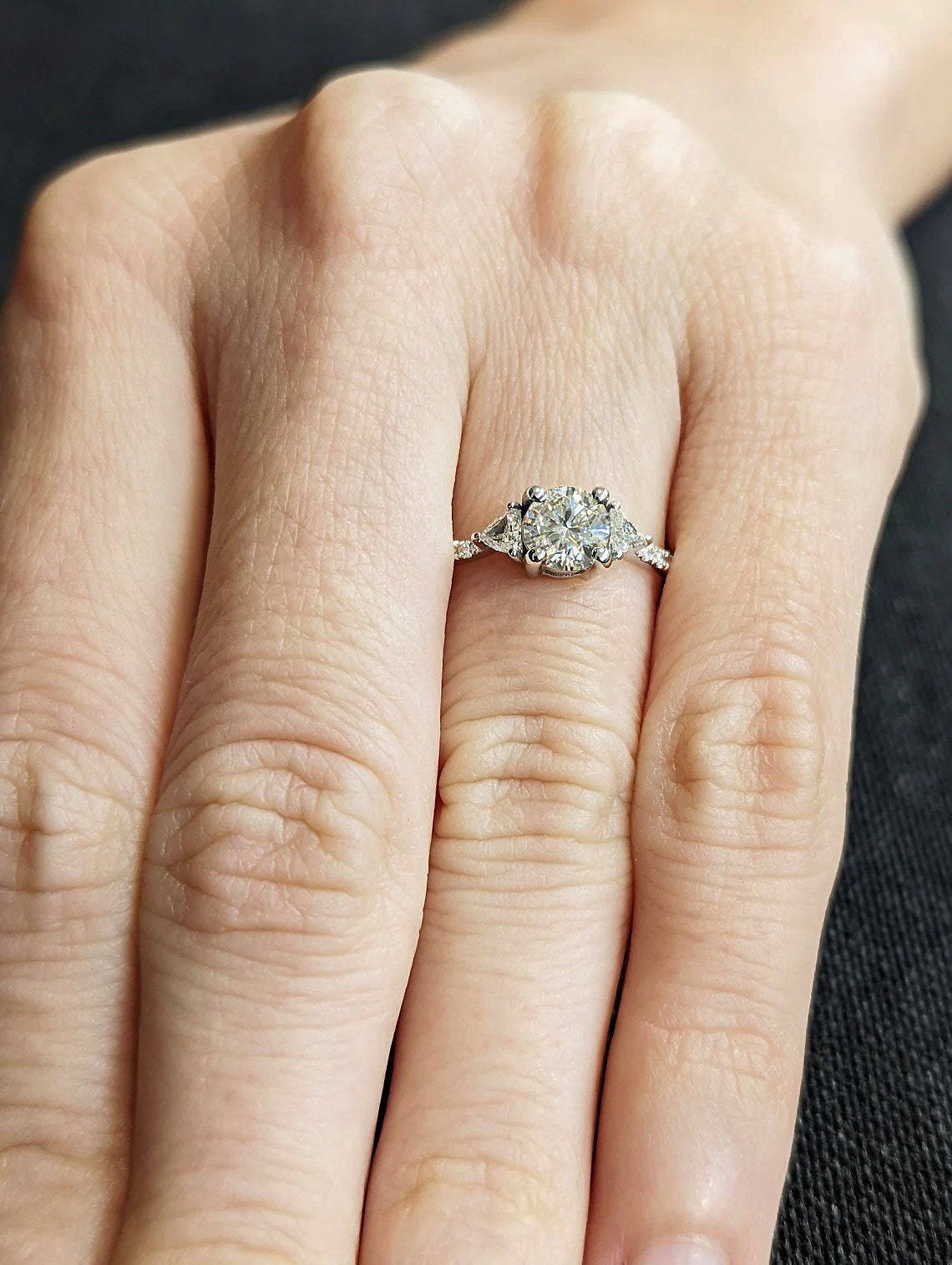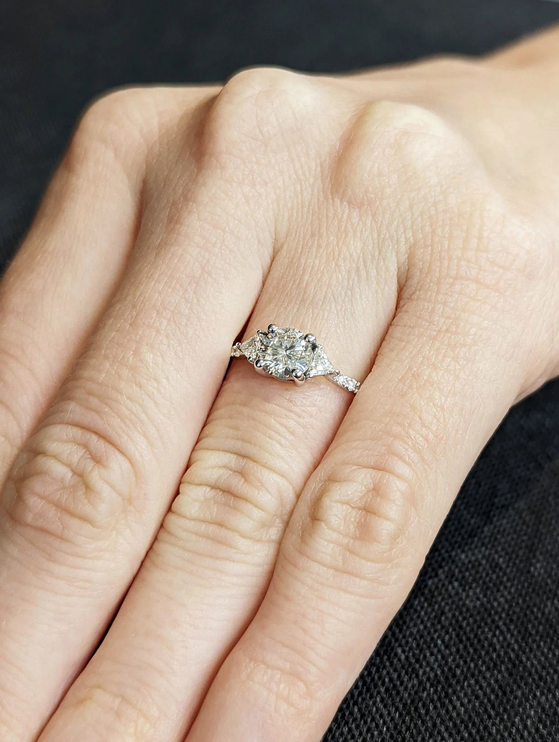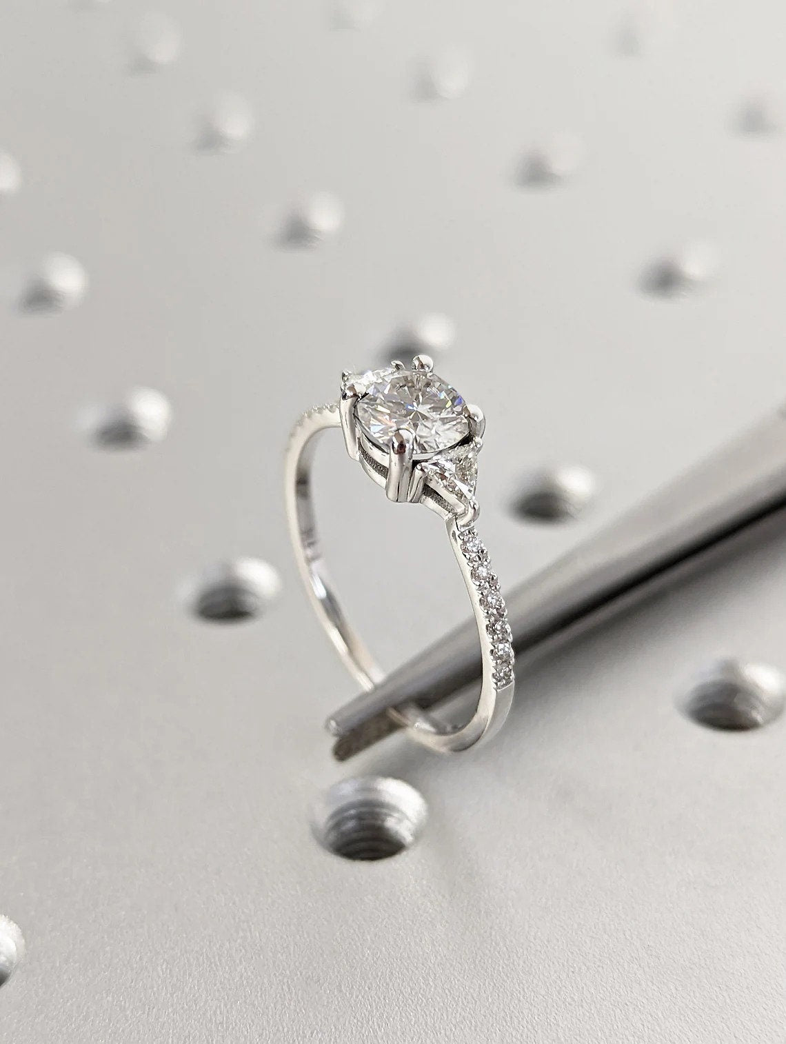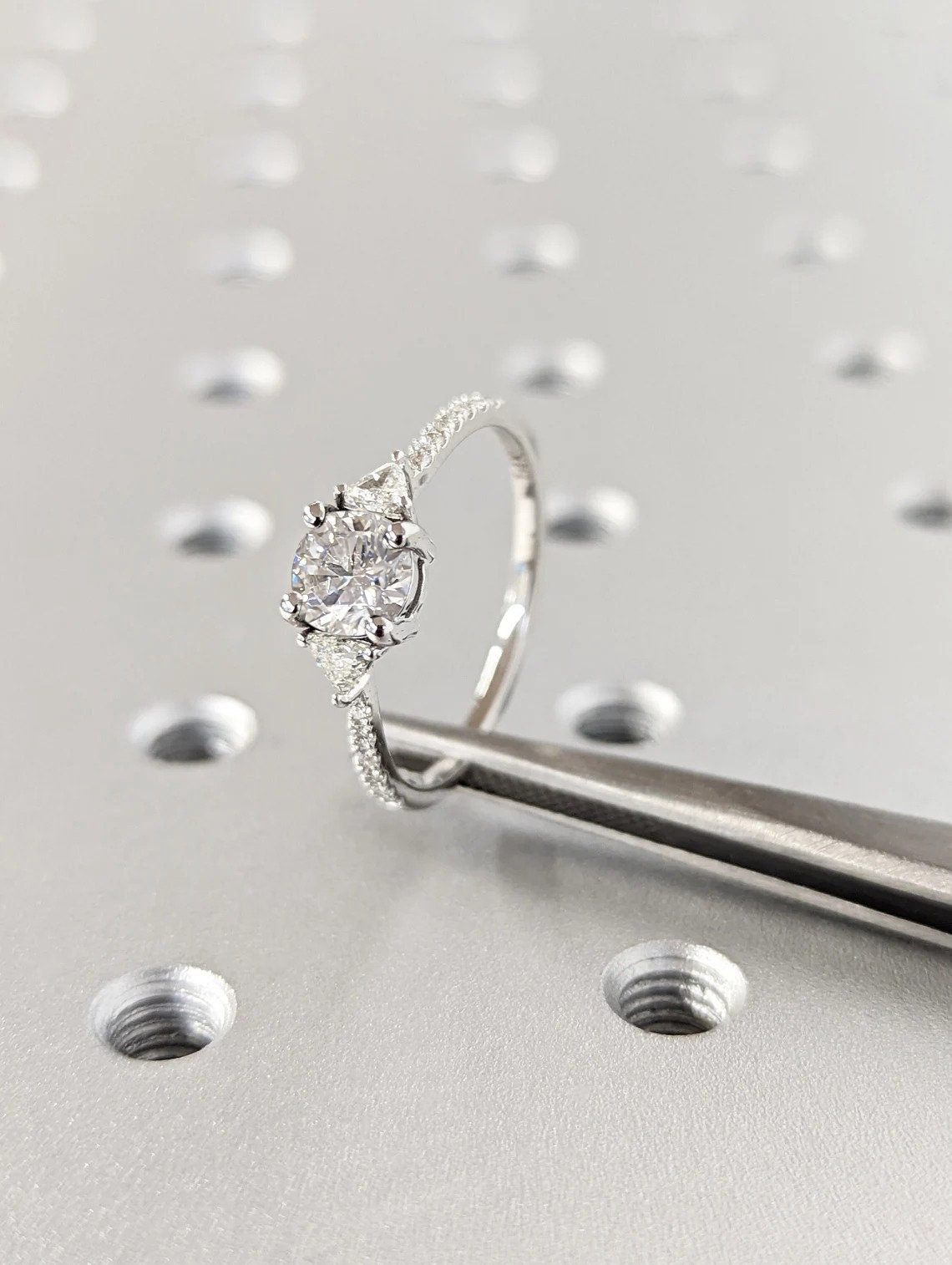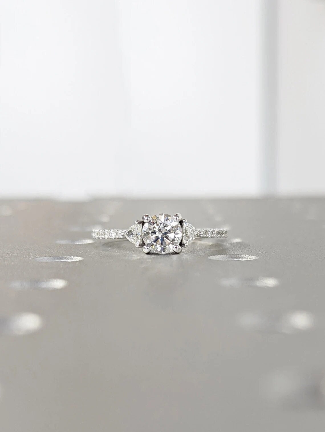 1.0CT Round Cut Unique 3 Stone Pave Lab Grown Diamond Engagement Ring For Her