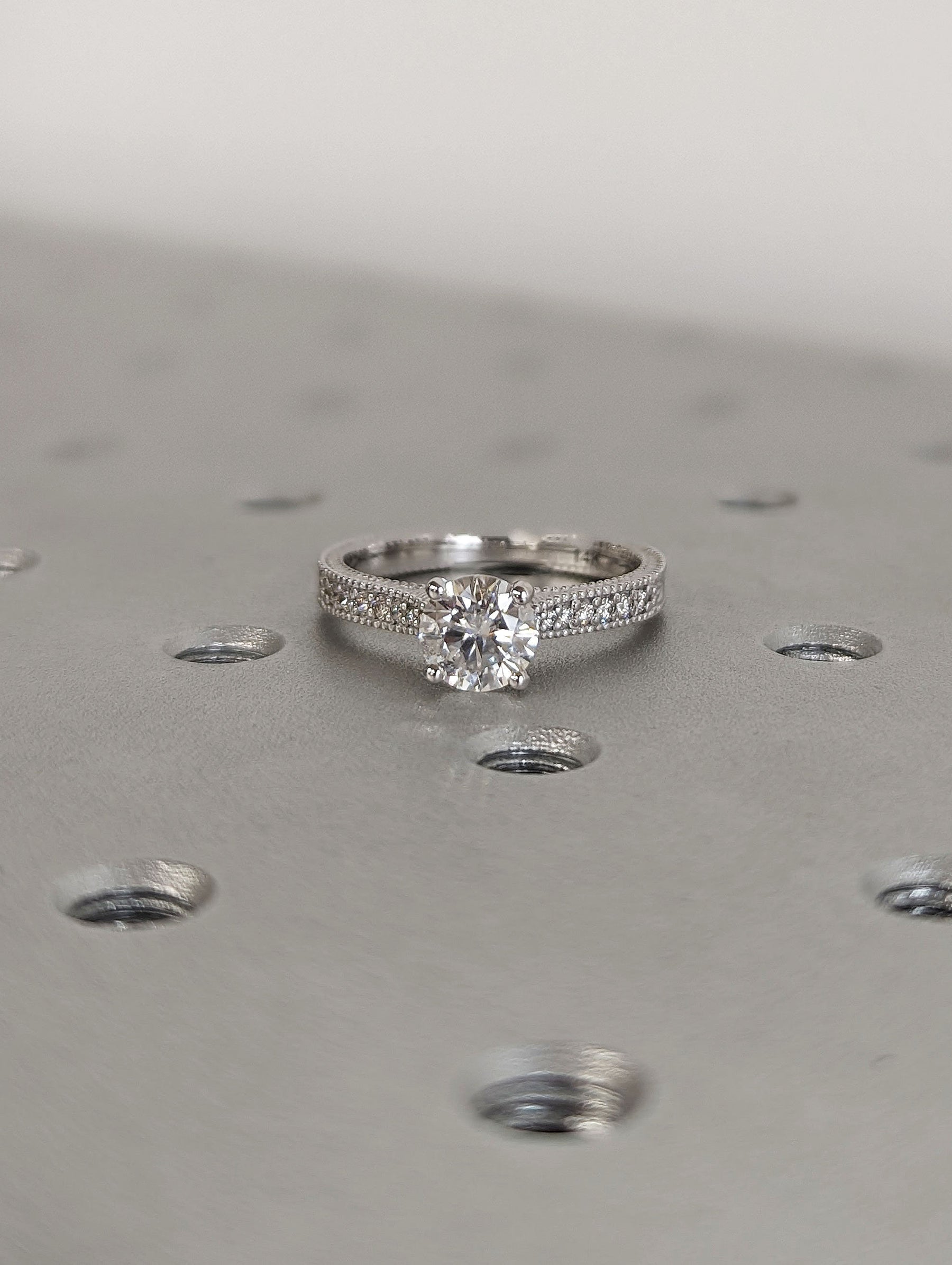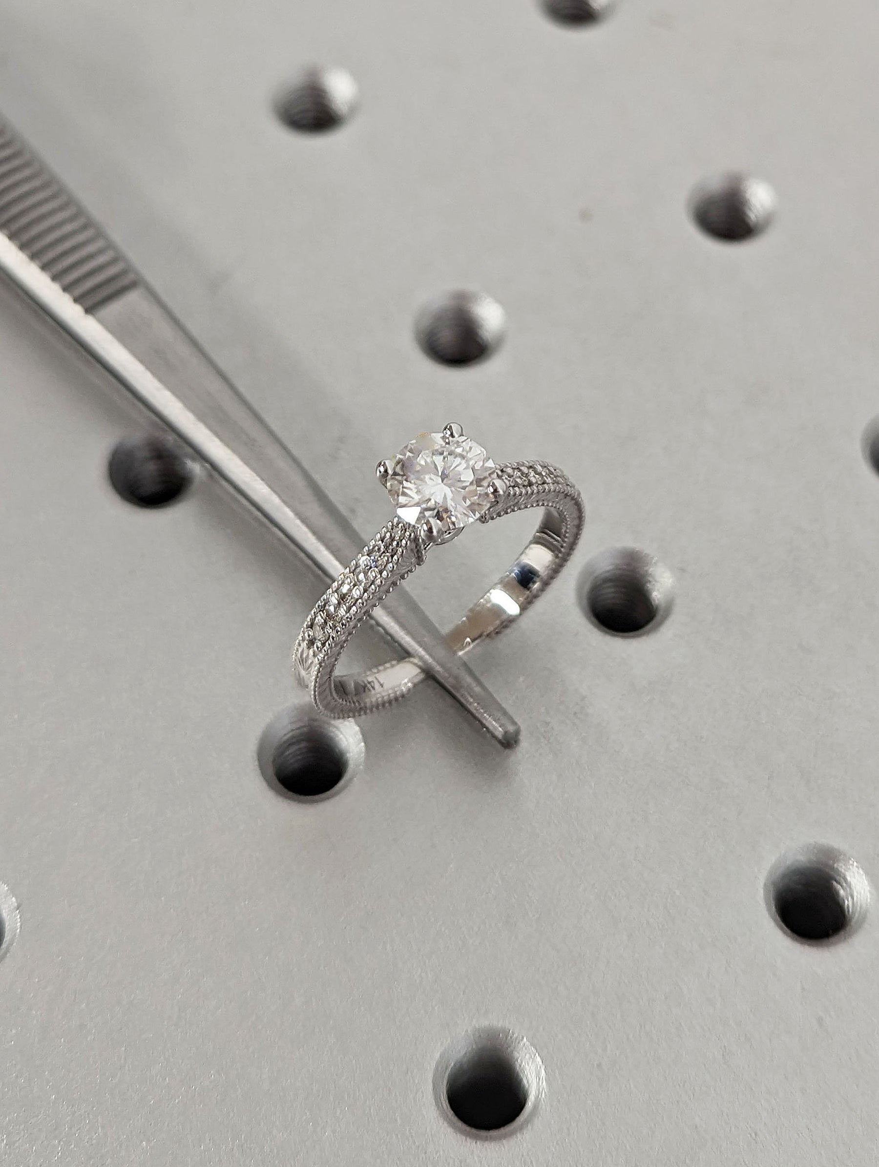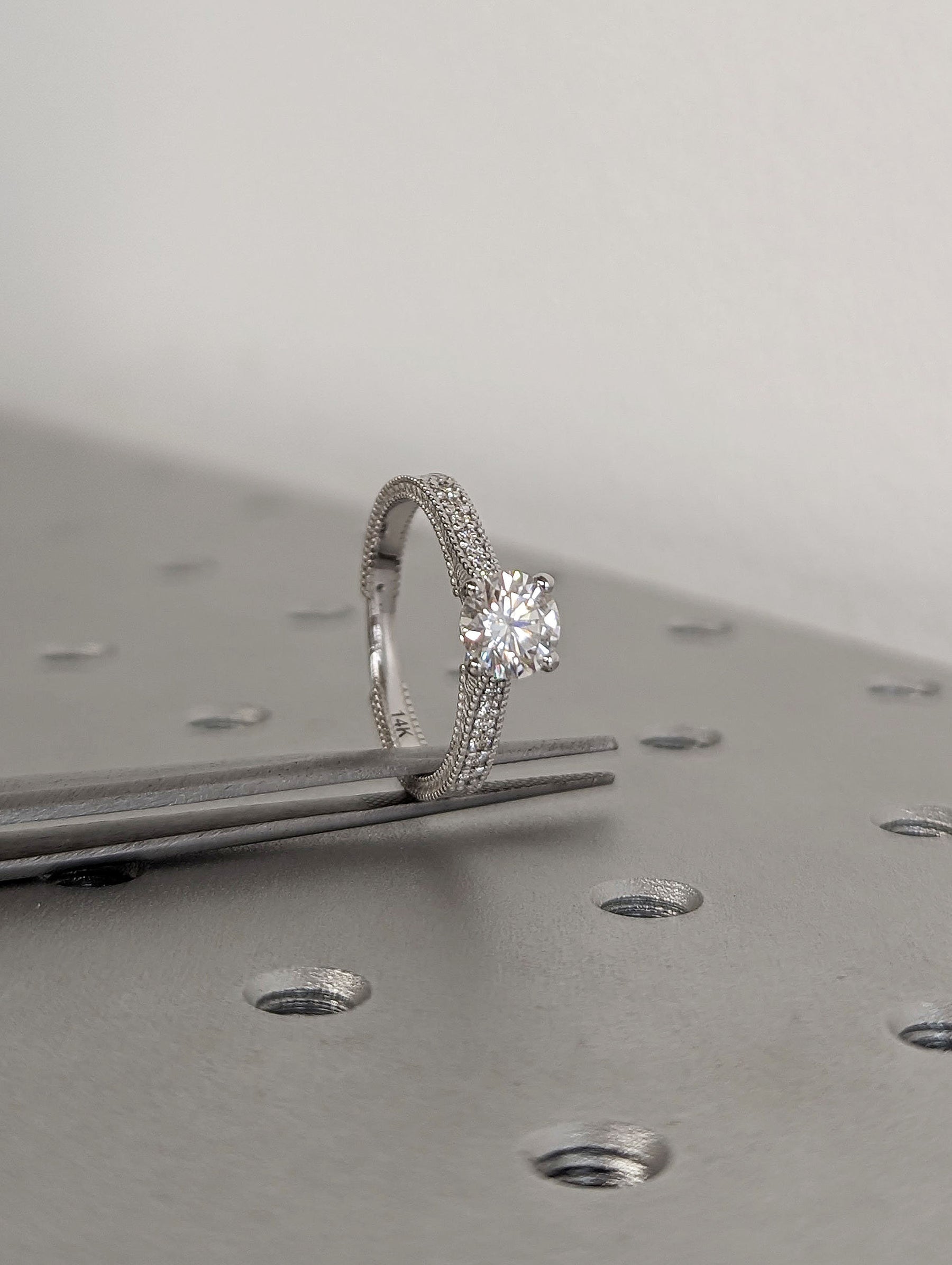 - Once the CAD is approved from your side. We will Cut & Polish your Moissanite Diamond and start the jewelry manufacturing process.
