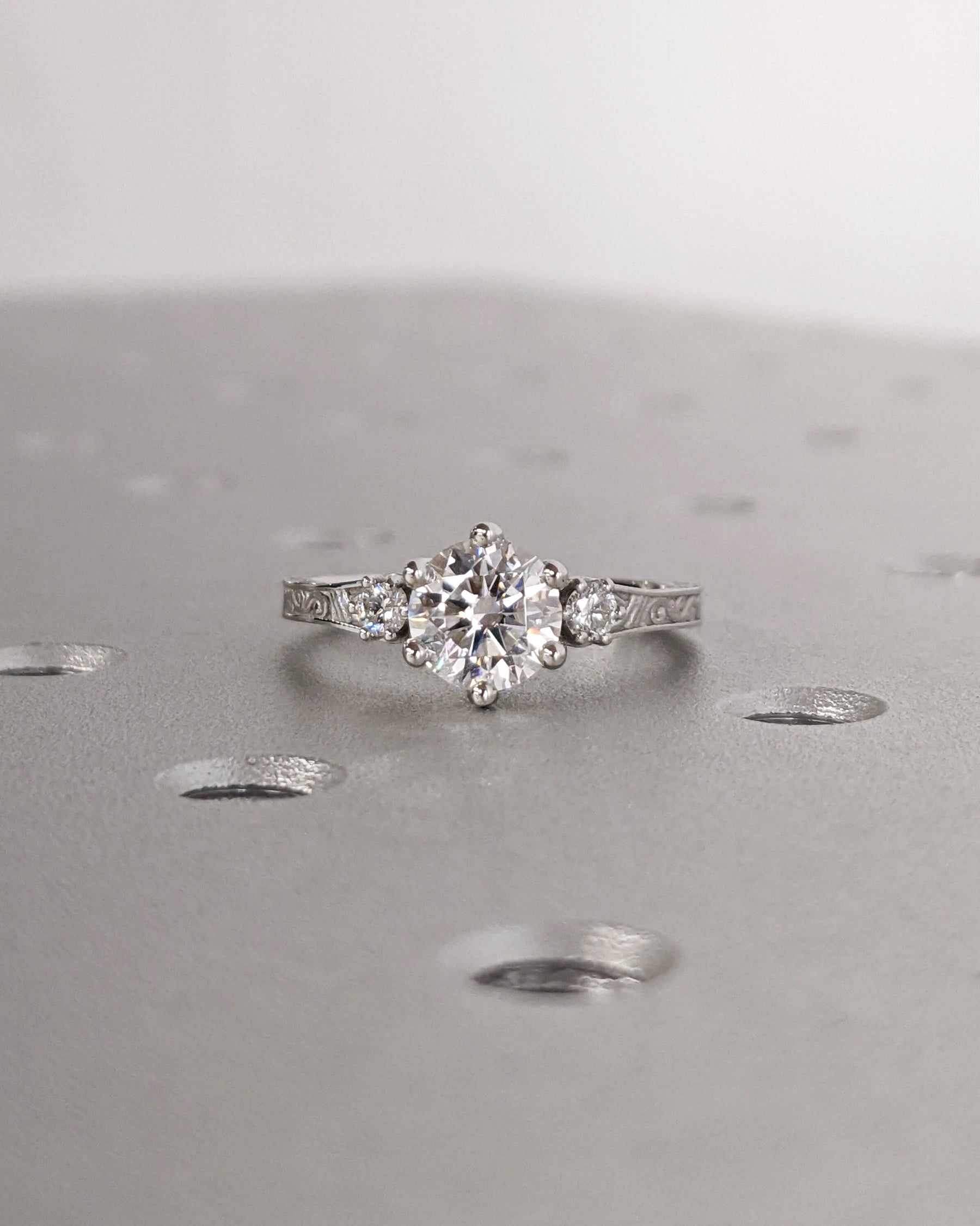 1.0CT Three Stone Lab Grown Round Diamond Engagement Ring For Her