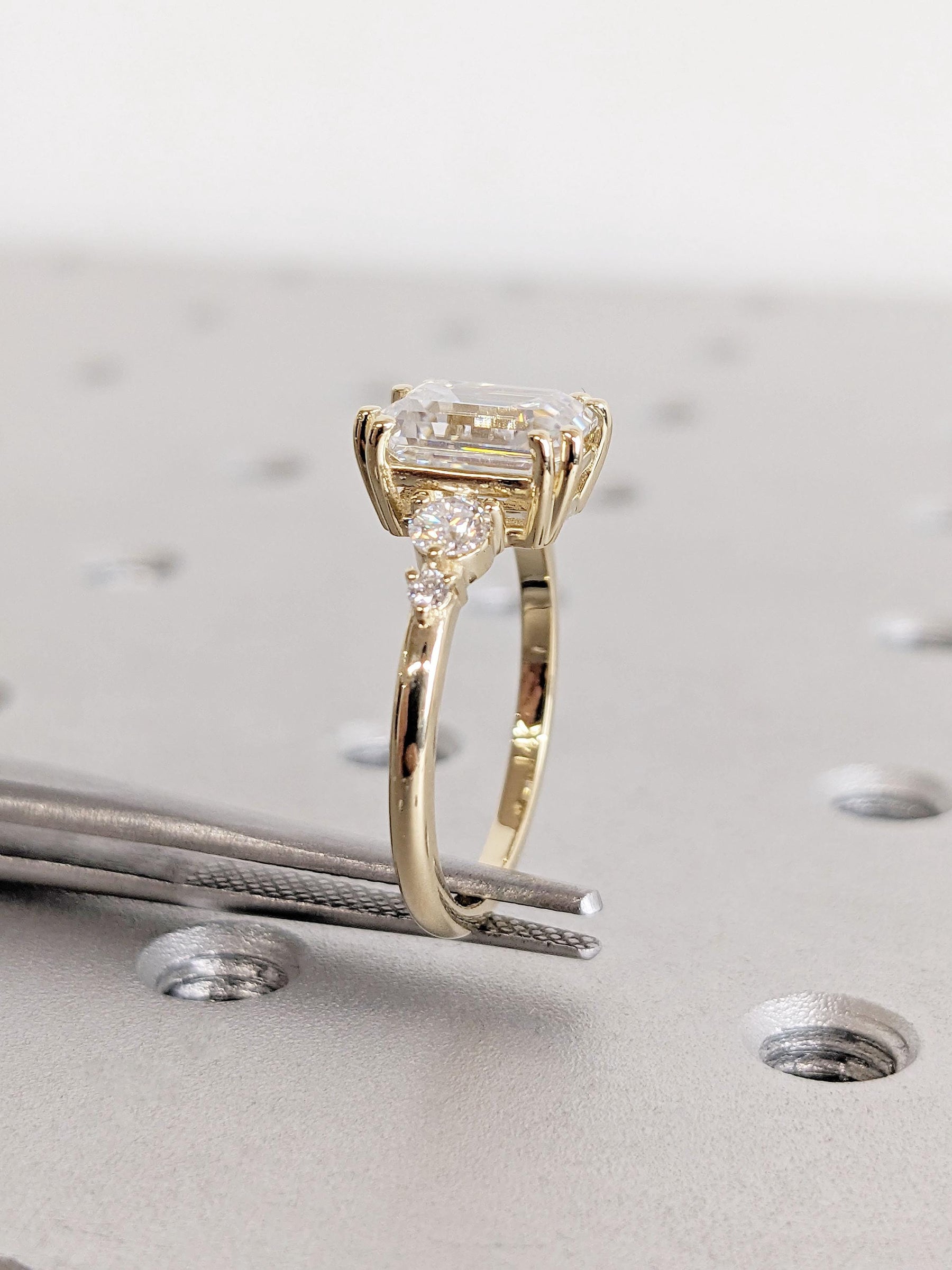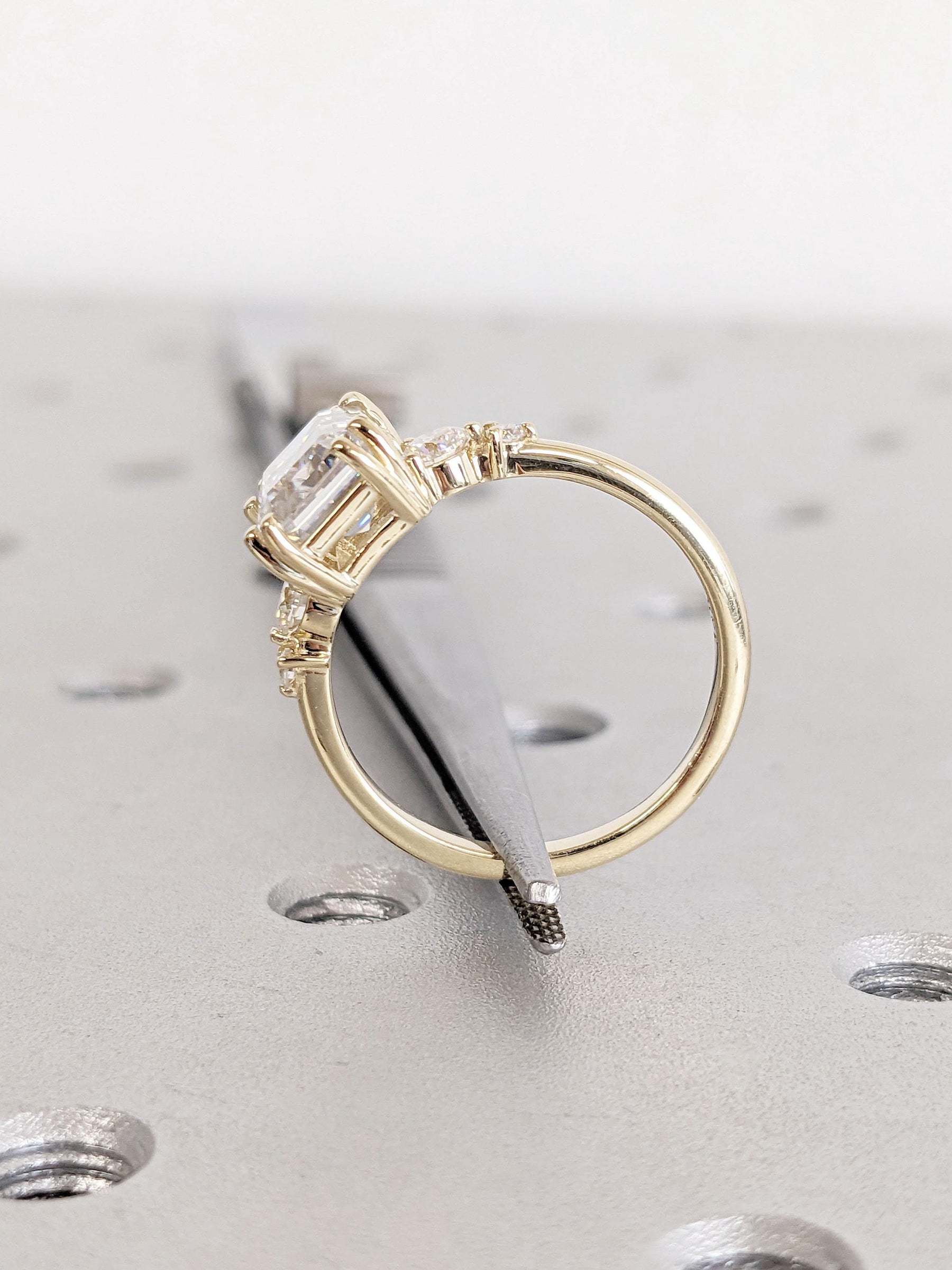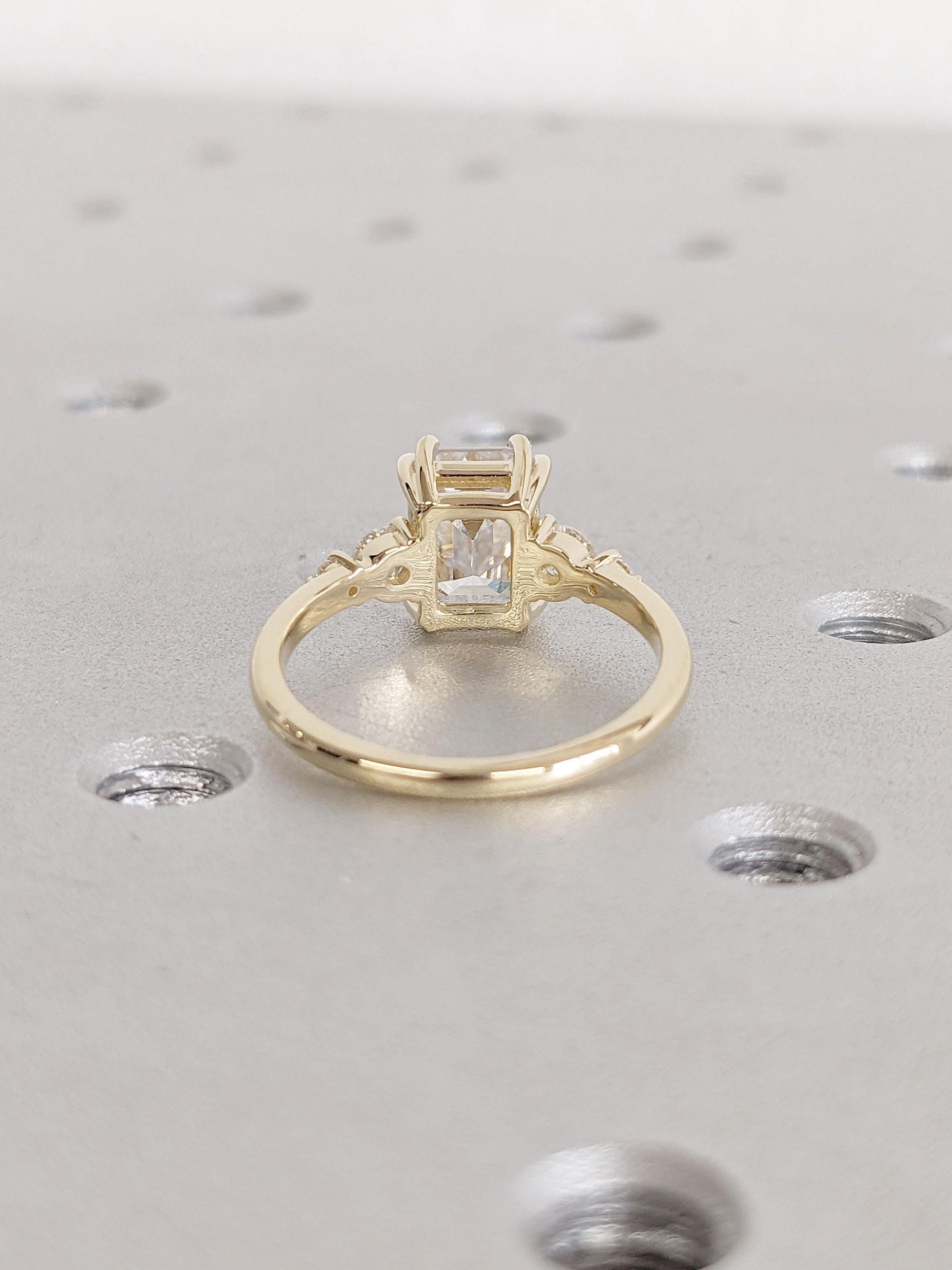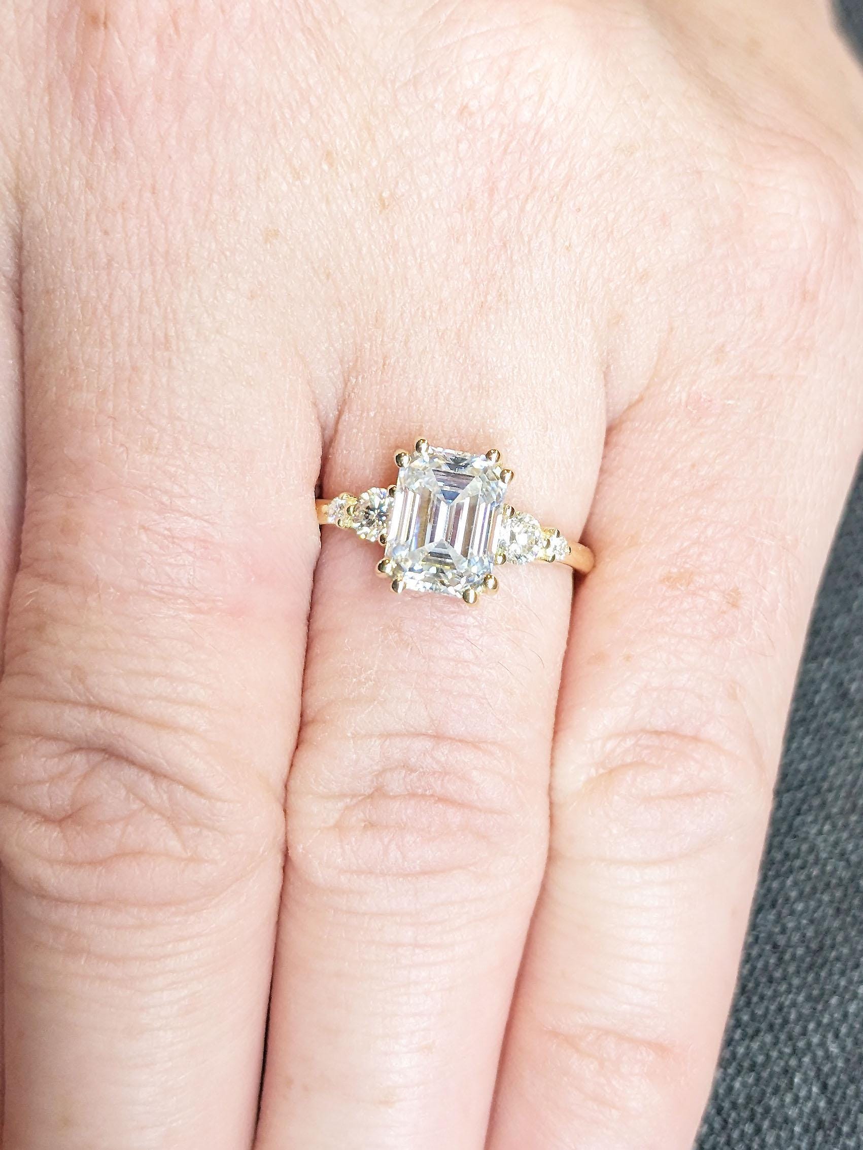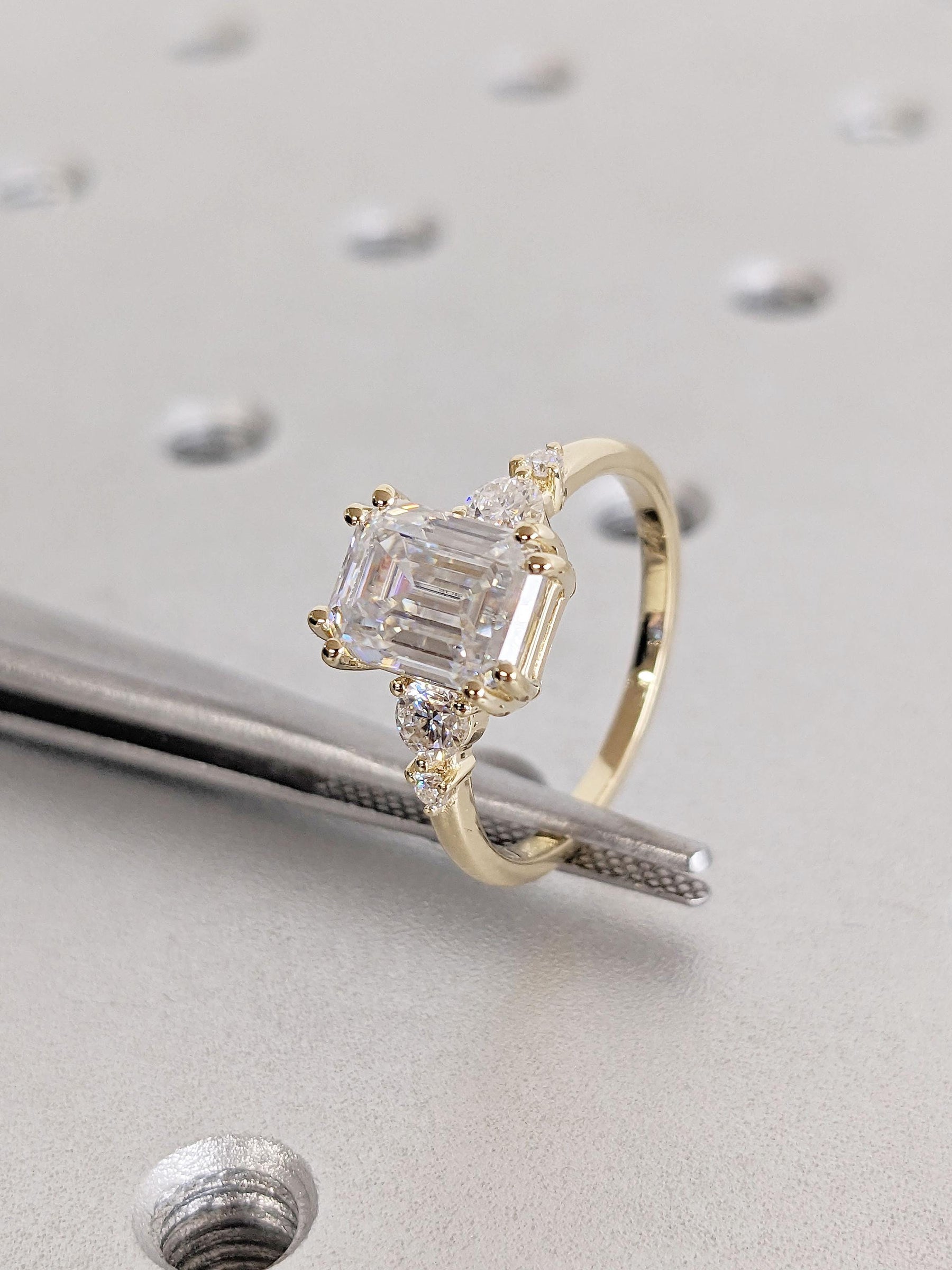 1.50CT Emerald Cut Cluster Lab Grown Diamond Engagement Ring For Her