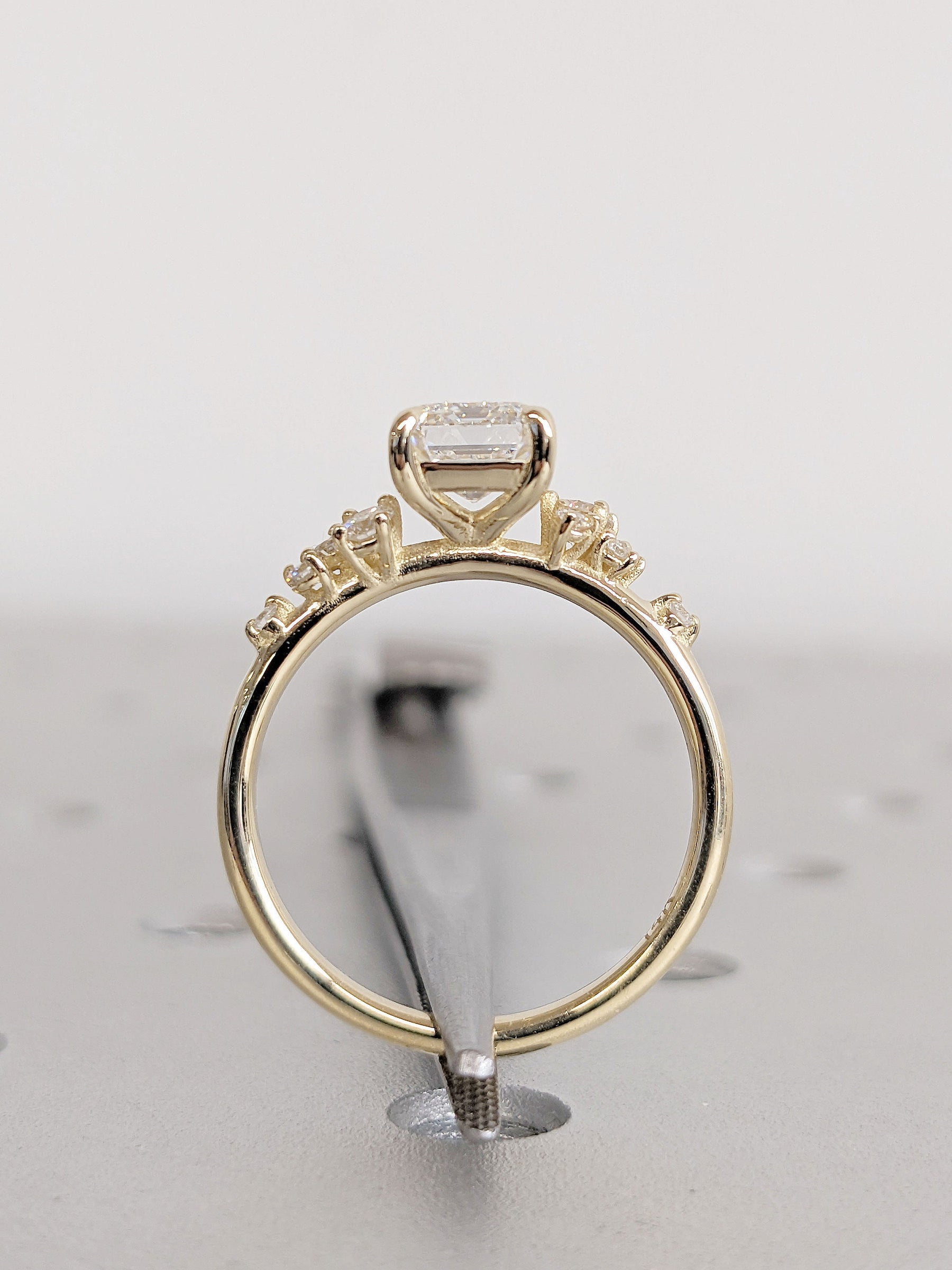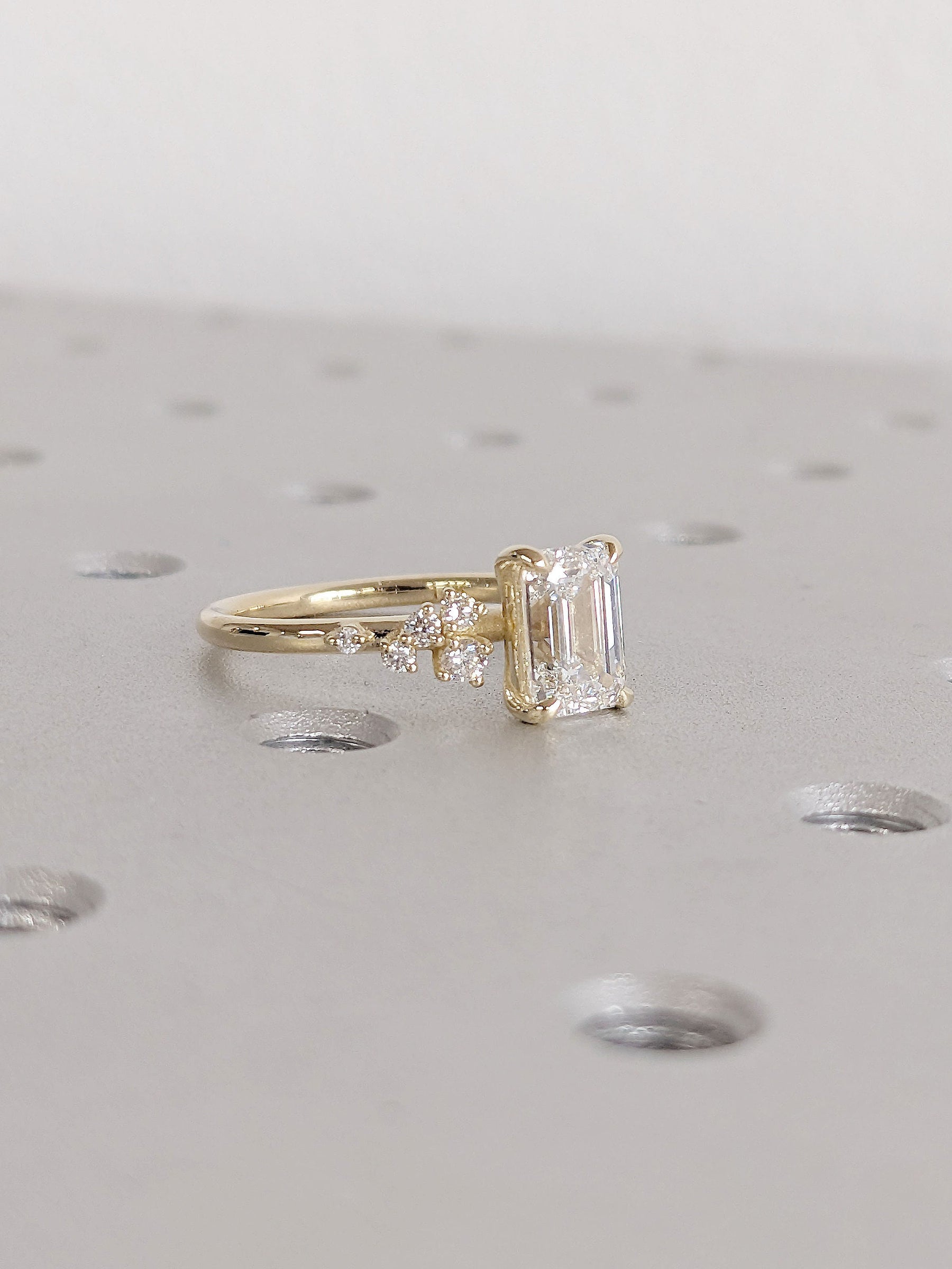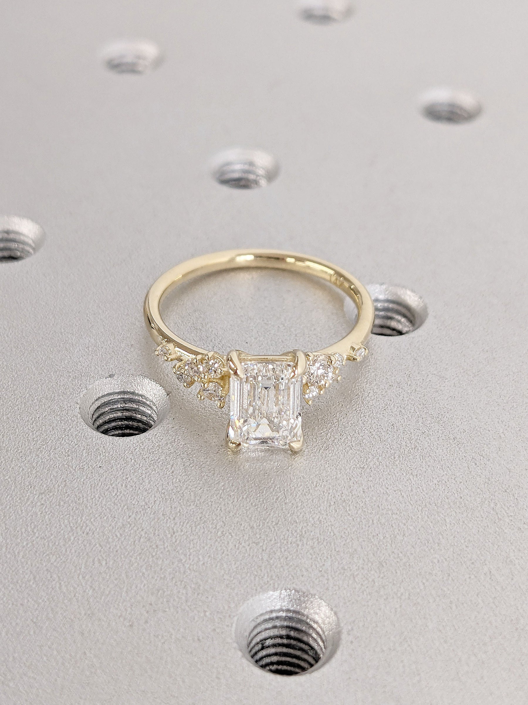 1.50CT Emerald Cut Cluster Lab Grown Diamond Engagement Ring For Women