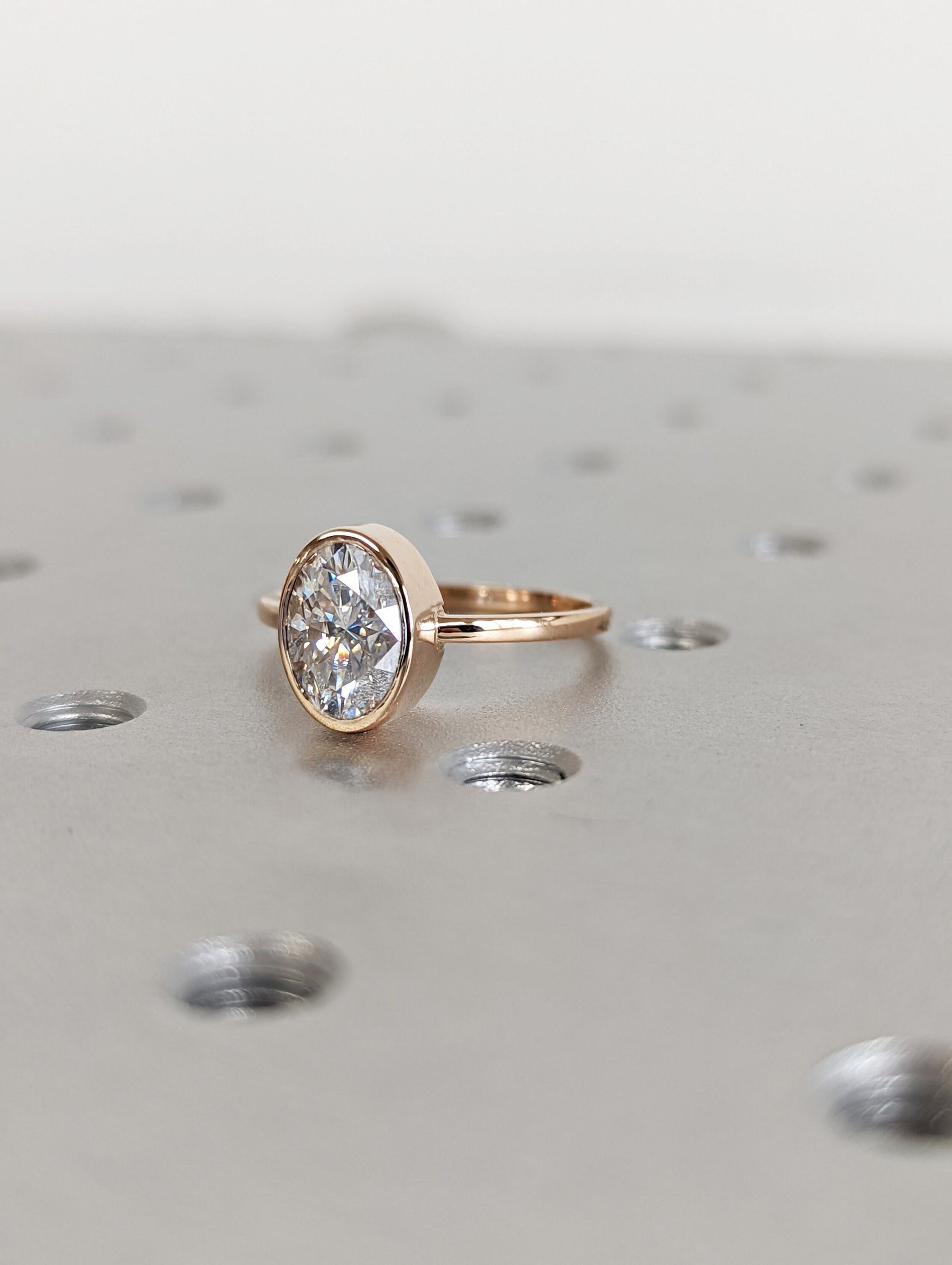 1.50CT Oval Cut Bezel Lab Grown Diamond Engagement Ring For Women