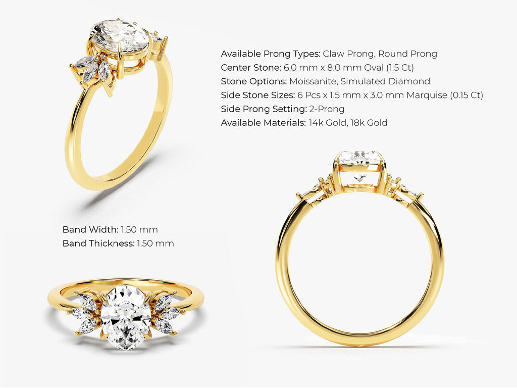 Introducing the stunning 1.50CT Oval Cut Cluster Diamond Lab Grown Engagement Ring for her, a dazzling display of elegance and modern romance. This exquisite piece features a captivating 1.50CT oval-cut lab-grown diamond at the center, surrounded by a radiant cluster of smaller diamonds that enhance its brilliance and create a stunning halo effect. The intricate design not only highlights the beauty of the central diamond but also adds depth and dimension to the ring. Perfect for the modern bride, this ring is a true statement of love. We have options of 1.0ct & 2.0ct available, and if you need any carat sizes, please contact us for personalized assistance. Celebrate your love story with this enchanting ring, a timeless token that she will cherish forever.