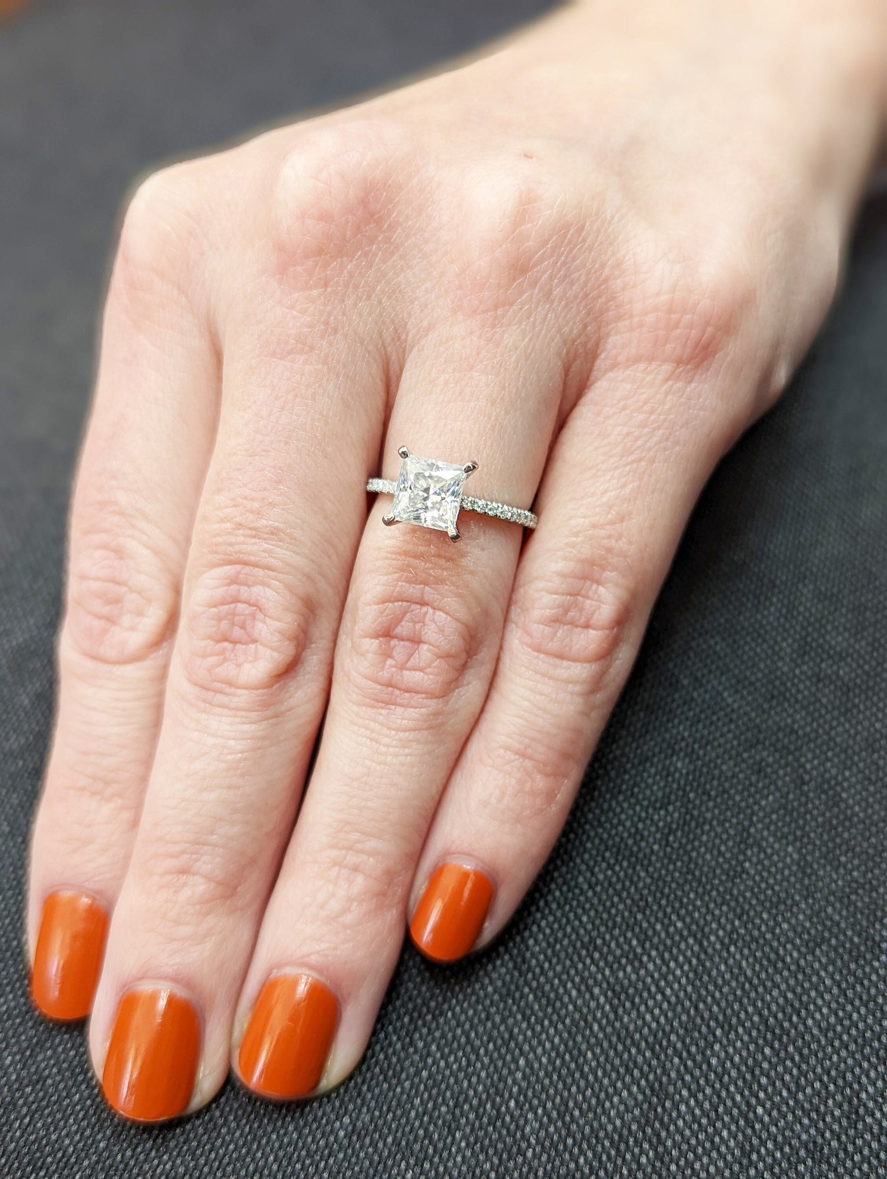 1.50CT Princess Cut Pave Diamond Lab Grown Engagement Ring For Women
