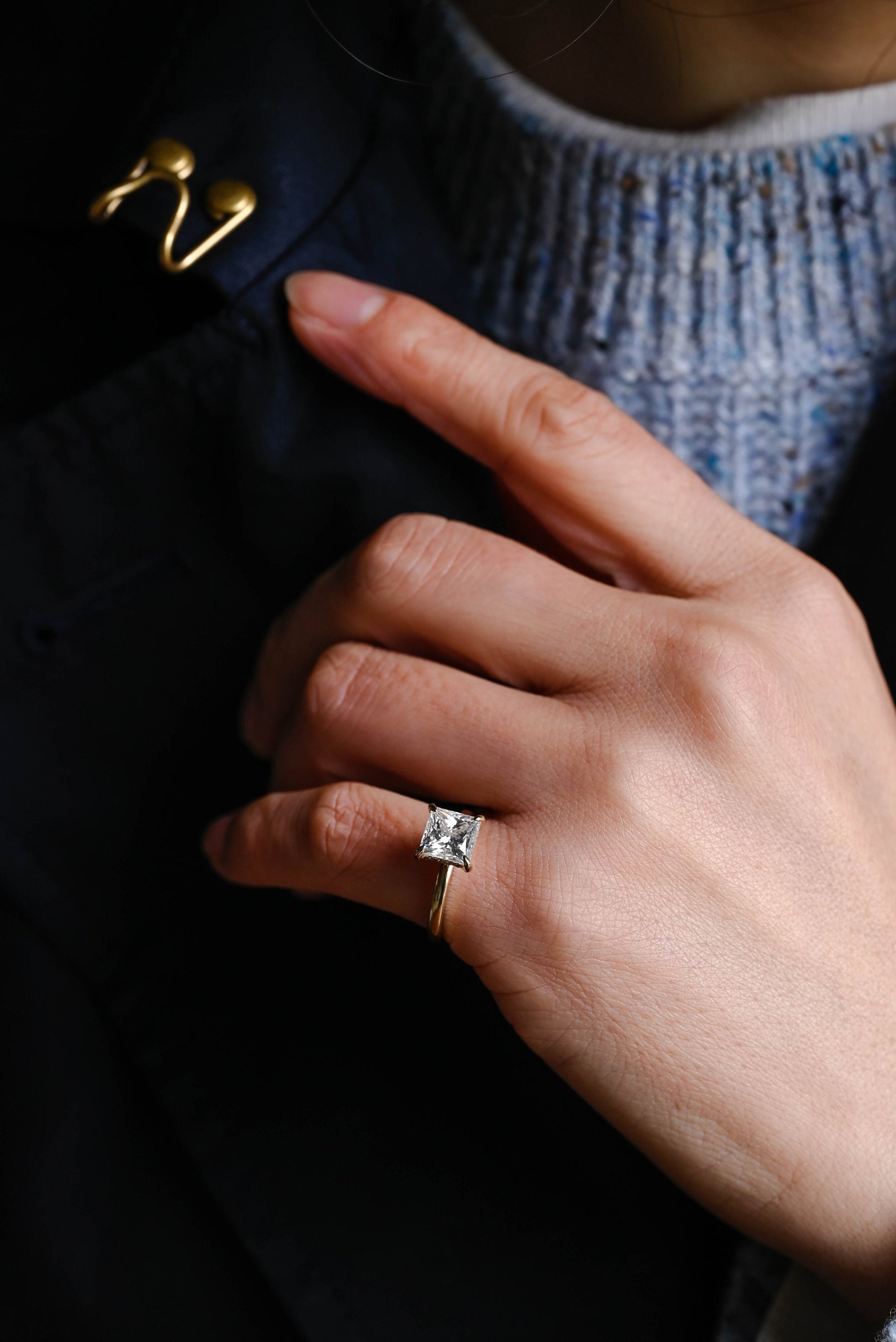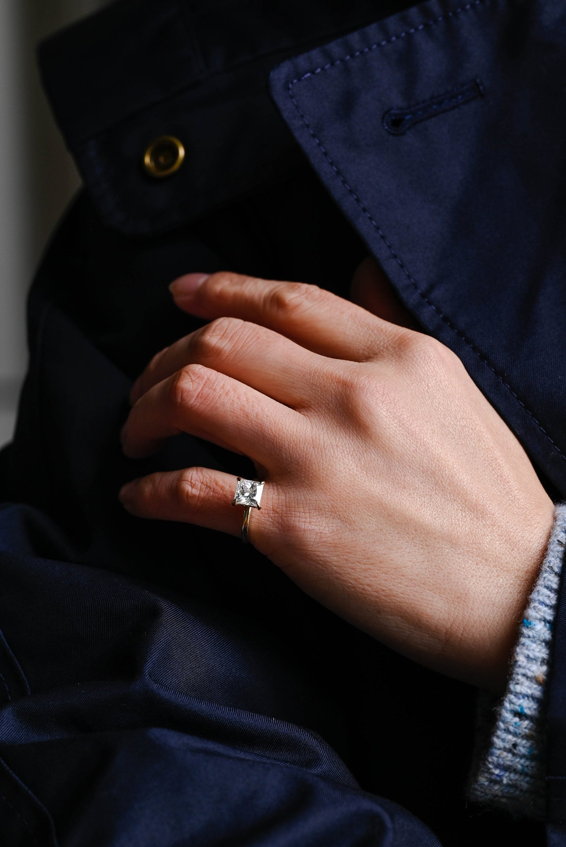 The 2.0CT Princess Cut Hidden Halo IGI Certified Lab Grown Diamond Engagement Ring for Her radiates elegance with its contemporary design and ethically sourced materials. Featuring a stunning 2.0CT princess cut diamond, the hidden halo amplifies its brilliance, creating a dazzling effect from every angle. IGI certification ensures quality and sustainability, offering a meaningful choice for a special moment. We have options of 1.0CT and 1.50CT available, and if you need any carat sizes, please contact us to customize this timeless piece to your preference.