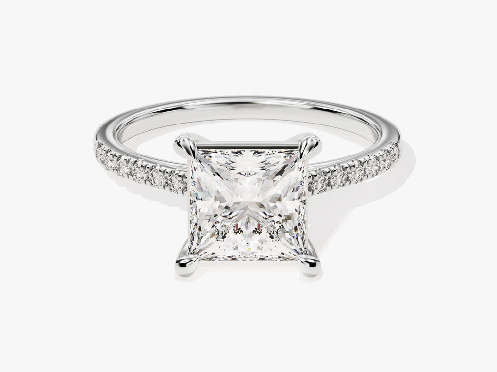 2.0CT Princess Cut Pave Lab Grown Diamond Engagement Ring For Her
