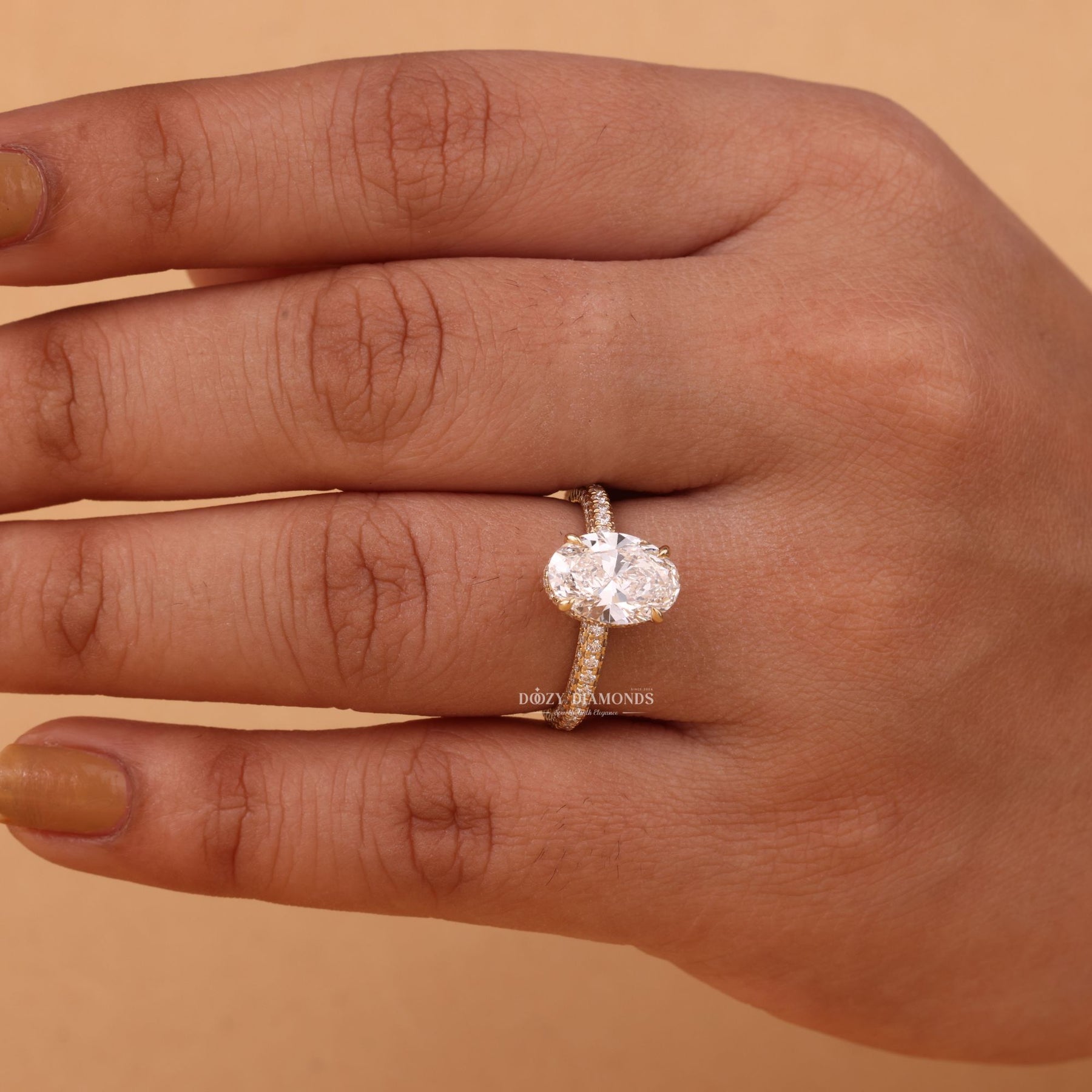 2.50CT-3.50CT Oval Cut F/VS1 Lab Grown Hidden Halo Diamond Engagement Ring