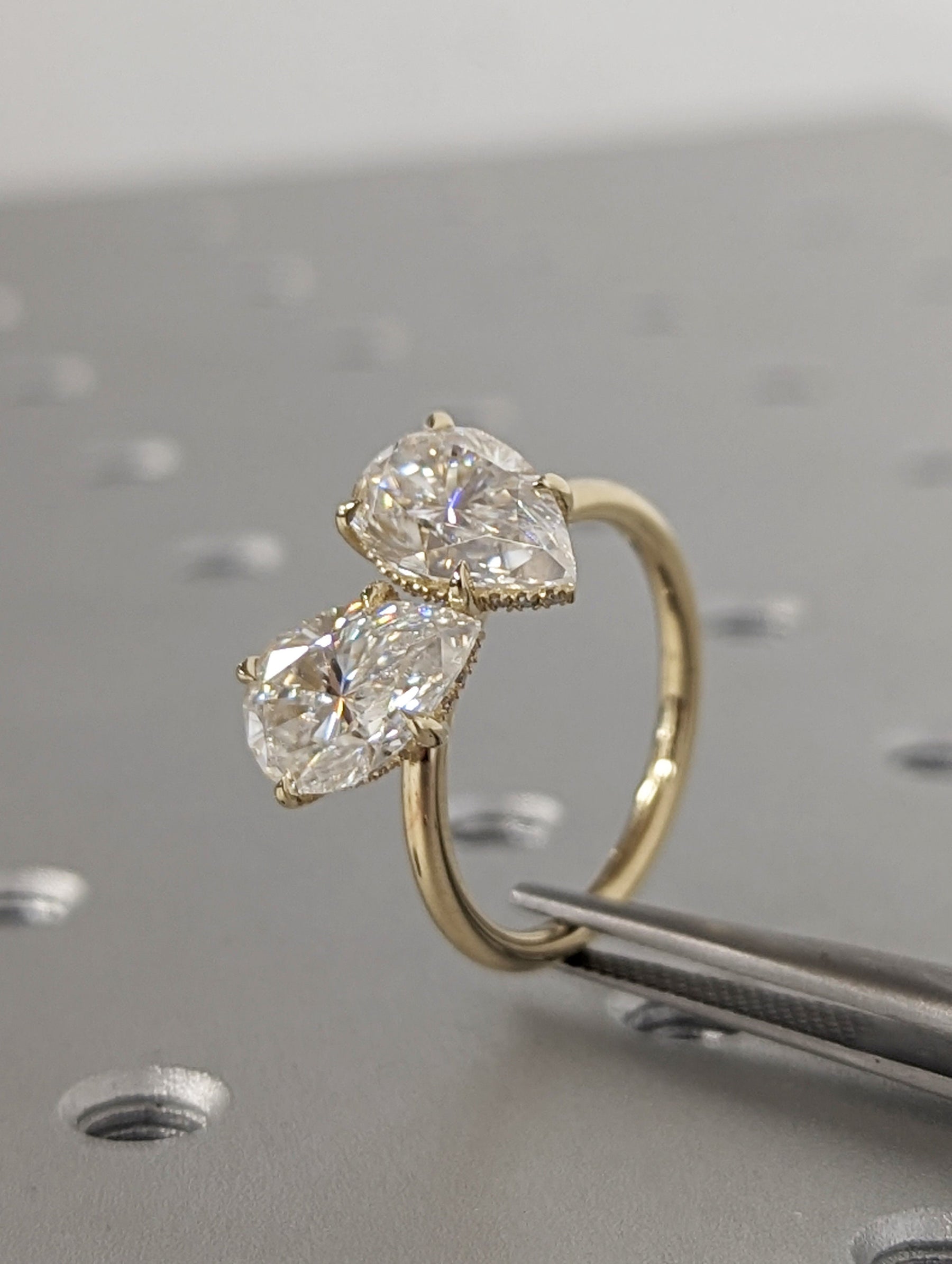 2.50CT Pear Hidden Halo Lab Grown Two Stone Diamond Engagement Ring Pretty Engagement Ring