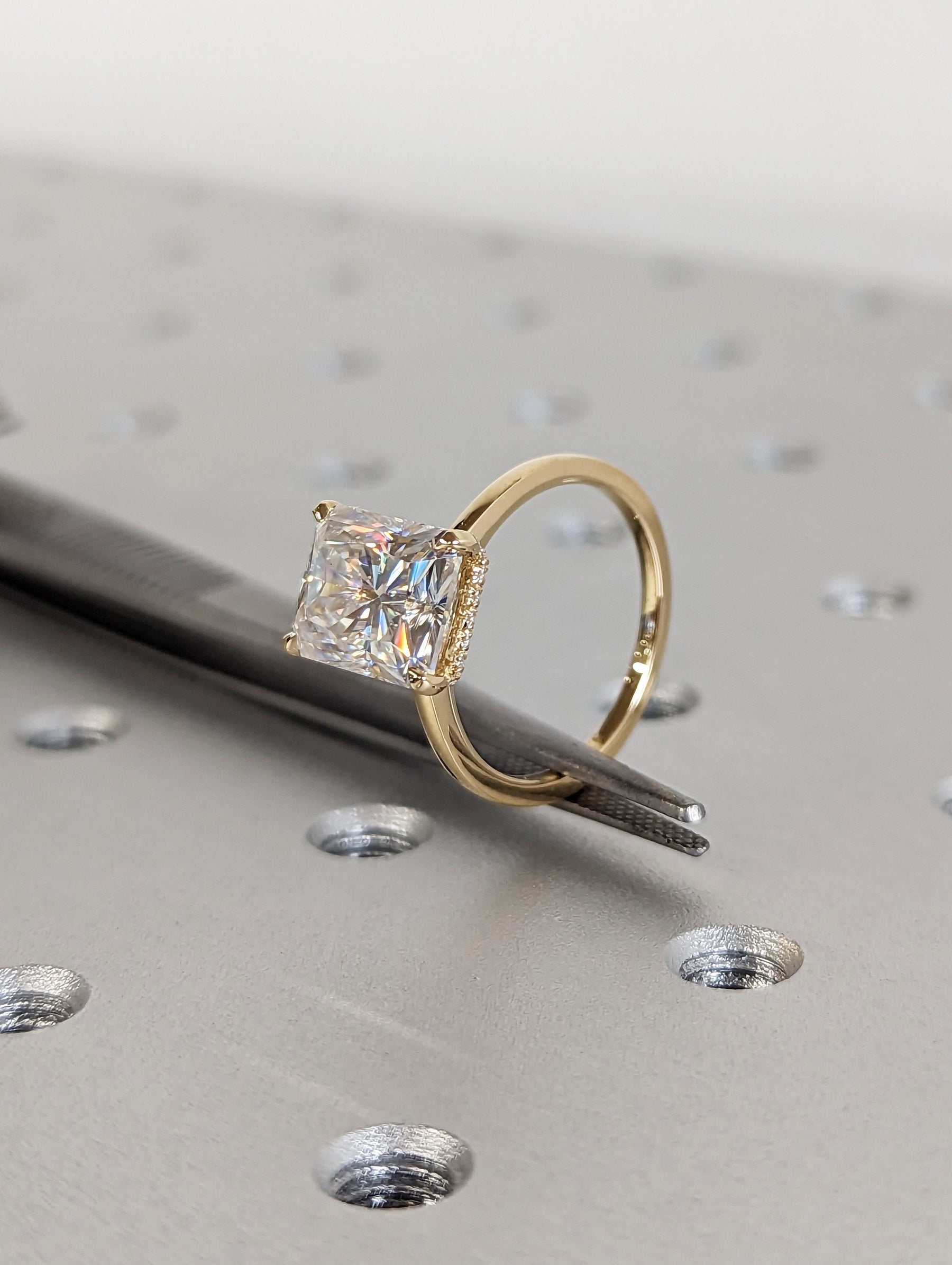 3.0CT Radiant Cut Hidden Halo Lab Grown Diamond Engagement Ring For Her