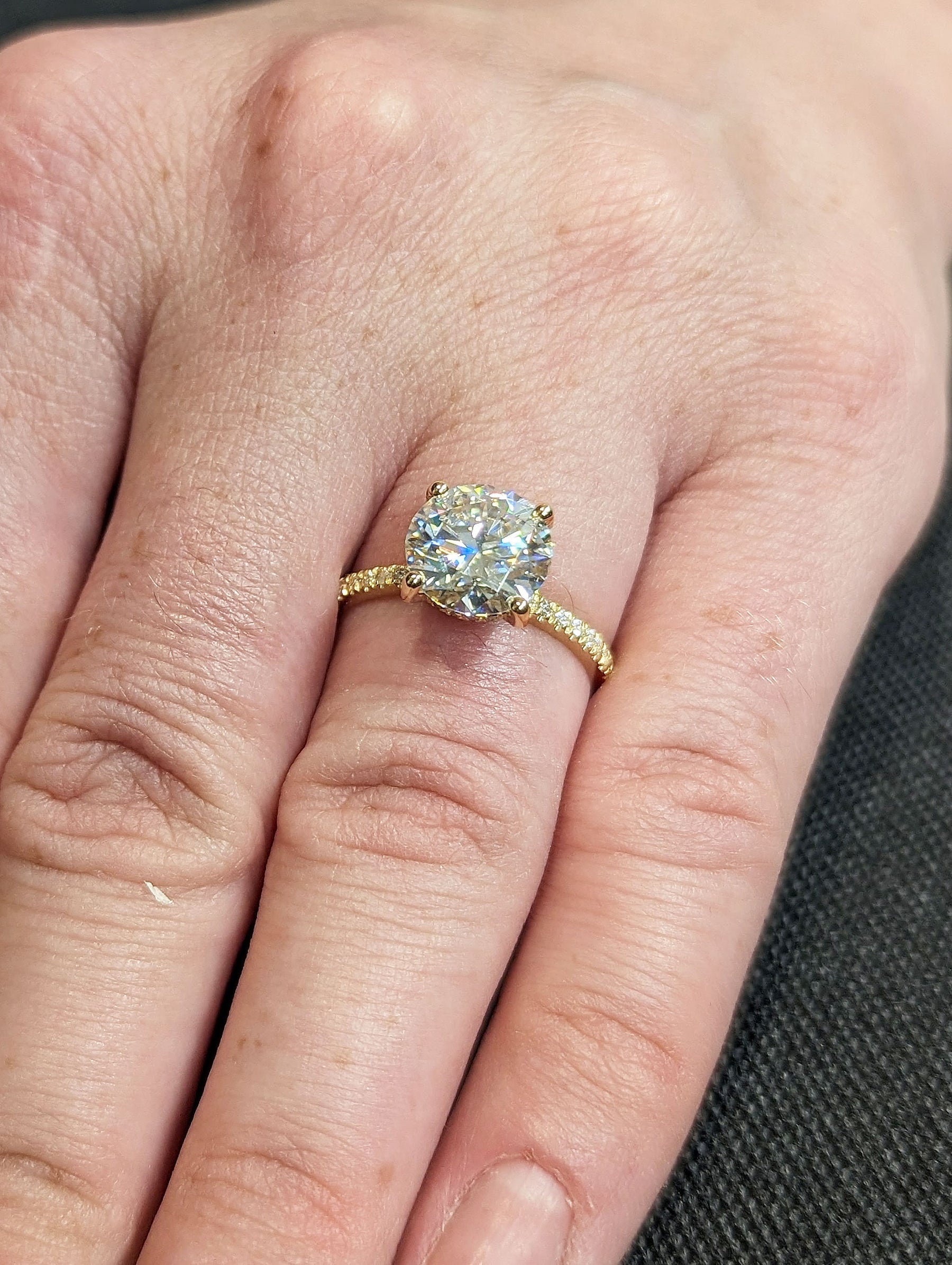 3.0CT Round Cut Hidden Halo Lab Grown Pave Diamond Engagement Ring For Her
