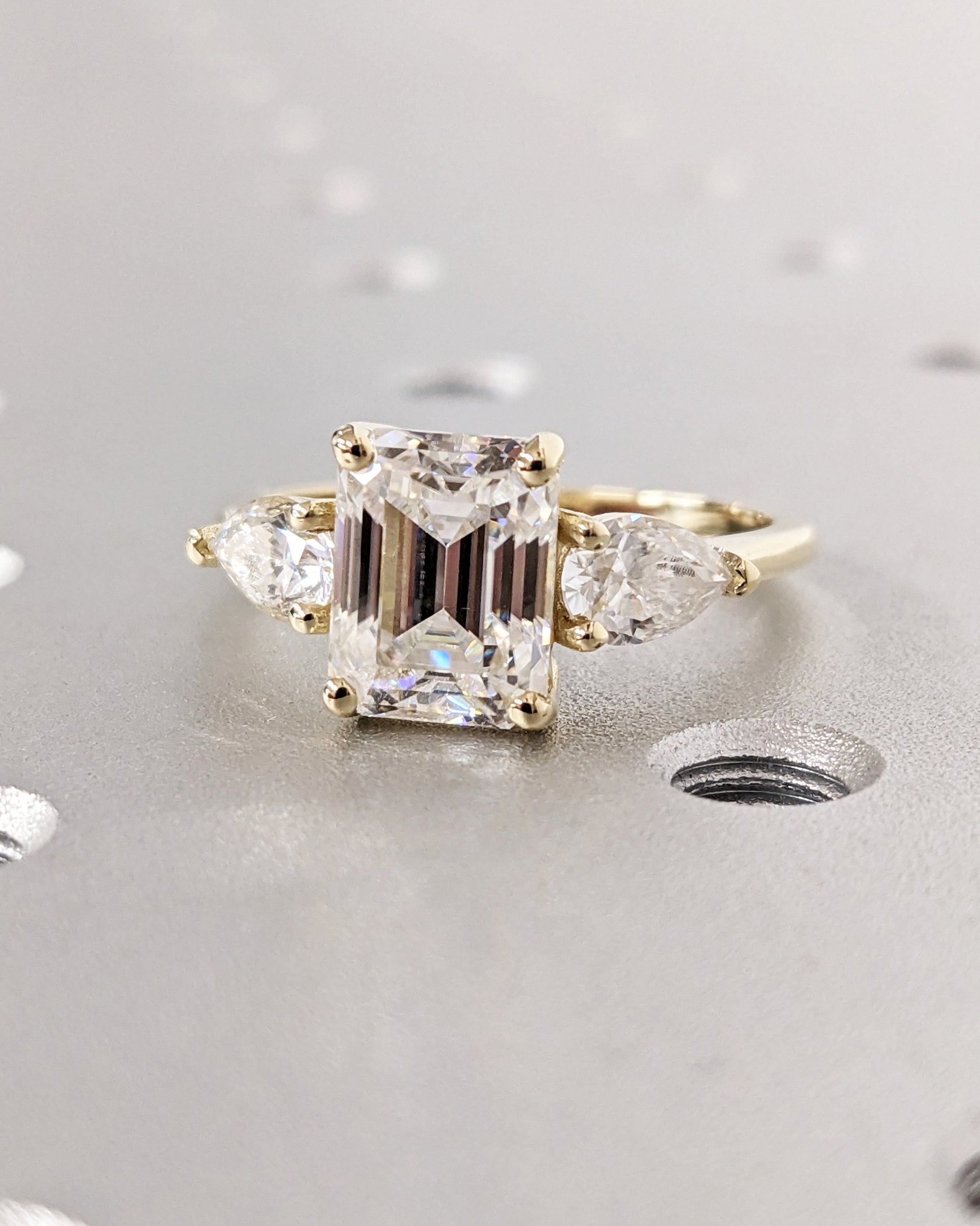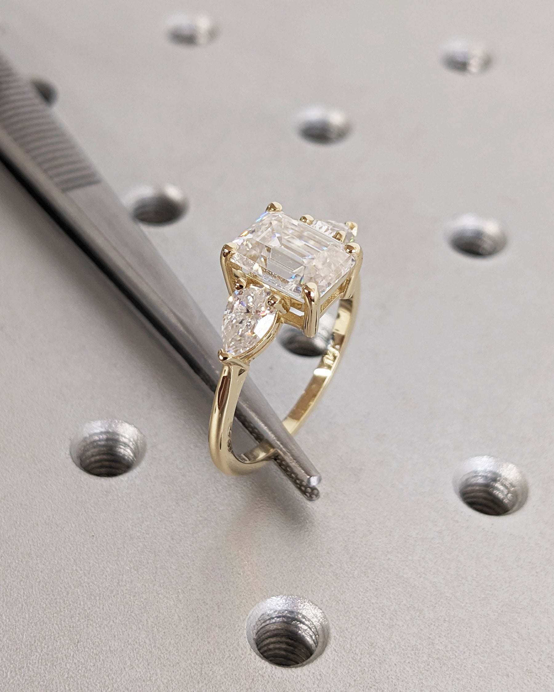 3.50CT Emerald Cut 3 Stone Diamond Lab Grown Engagement Ring For Women
