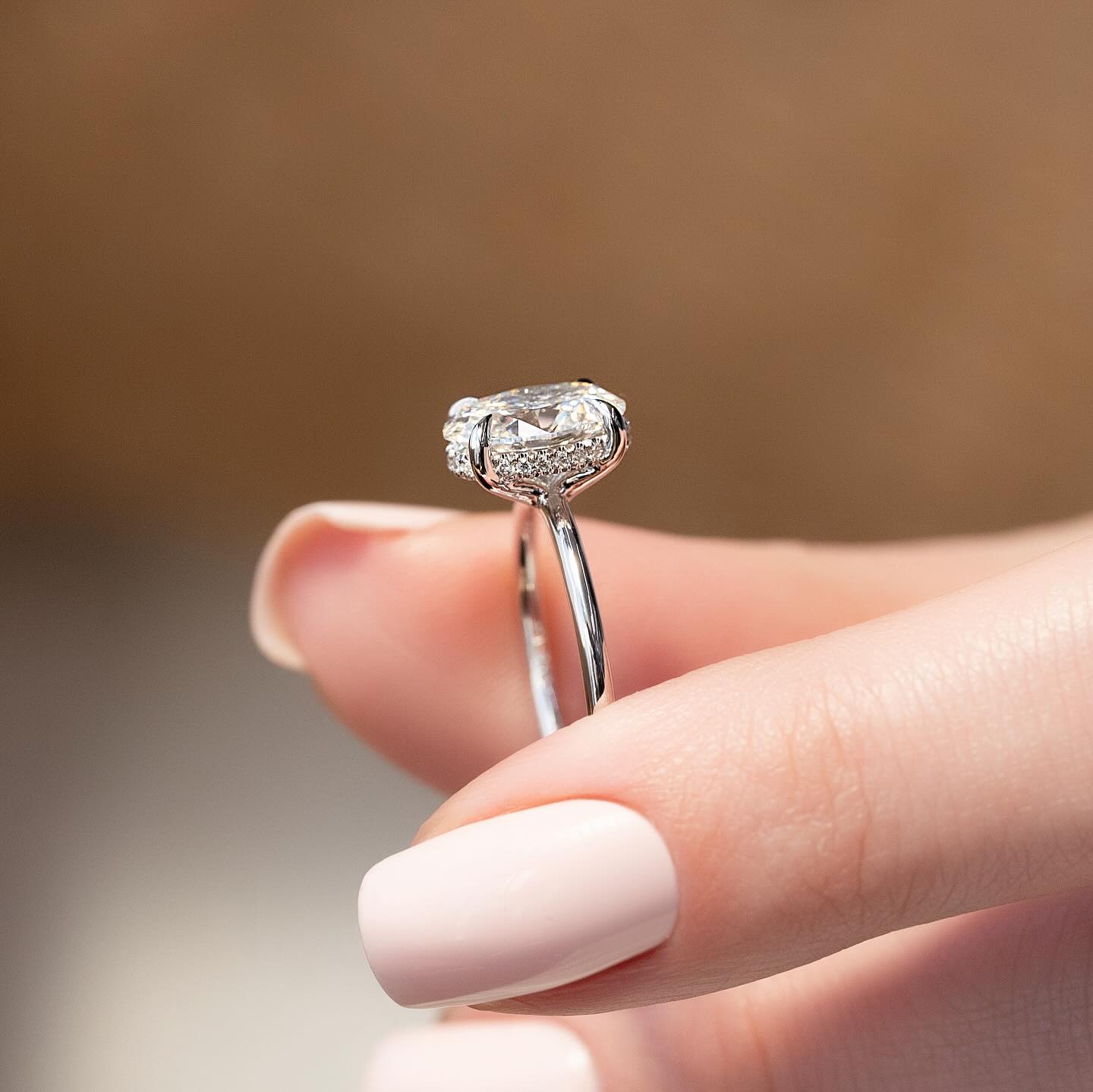1.0-3.0 CT Oval Lab Grown Diamond Hidden Halo Engagement Ring