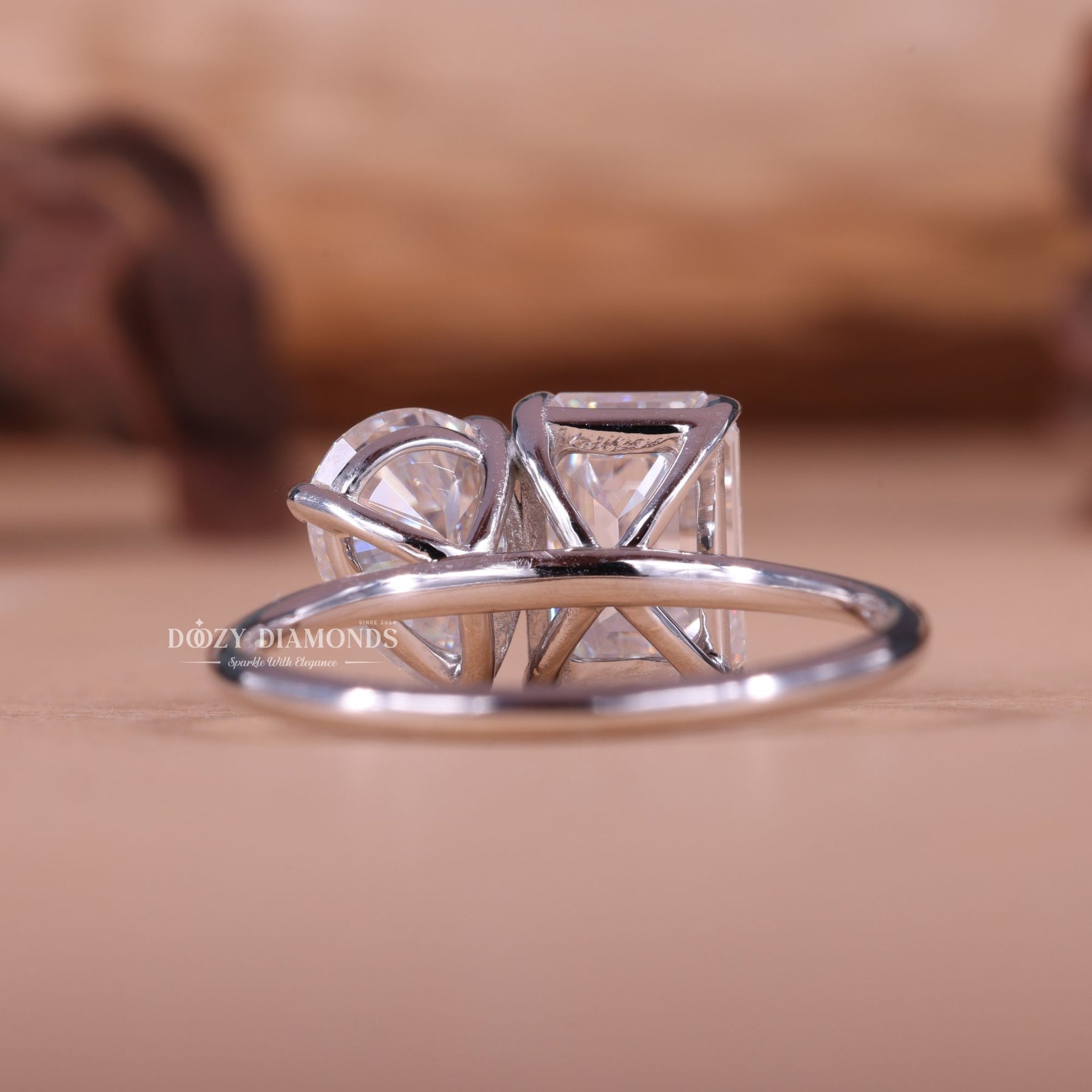 Pear & Emerald Cut Lab Grown E/VS1 Two Stone Diamond Engagement Ring
