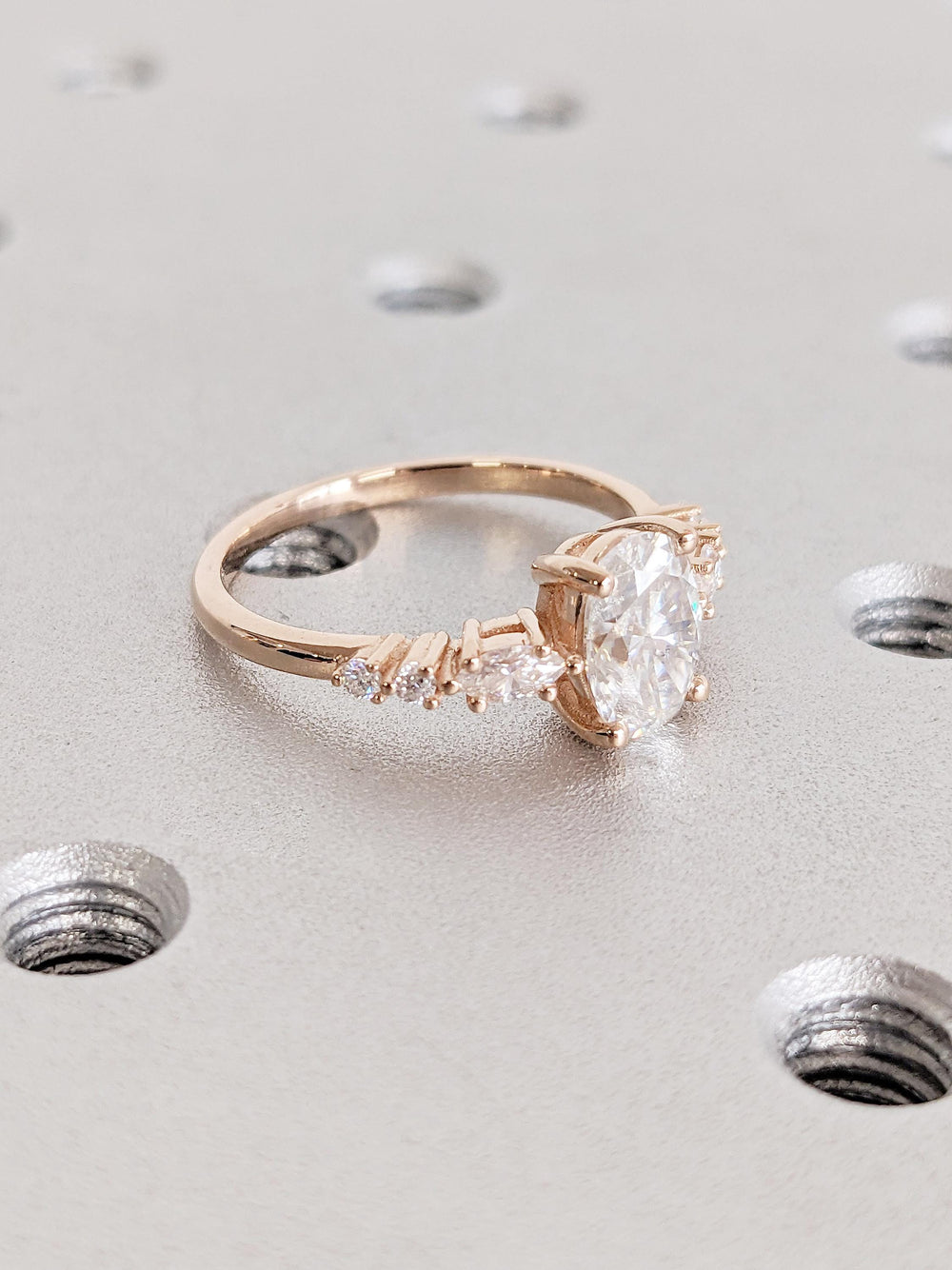 1.0CT Oval Cut Lab Grown Cluster Diamond Engagement Ring For Her