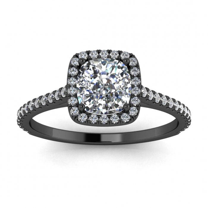 2.0CT Cushion Cut Halo Lab Grown Pave Diamond Engagement Ring For Women