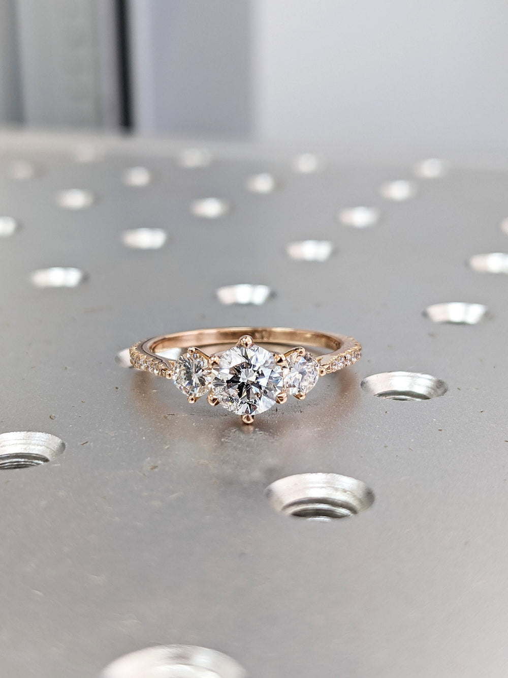 1.0CT Round Lab Grown 3 Stone Diamond Engagement Ring Pretty Engagement Ring