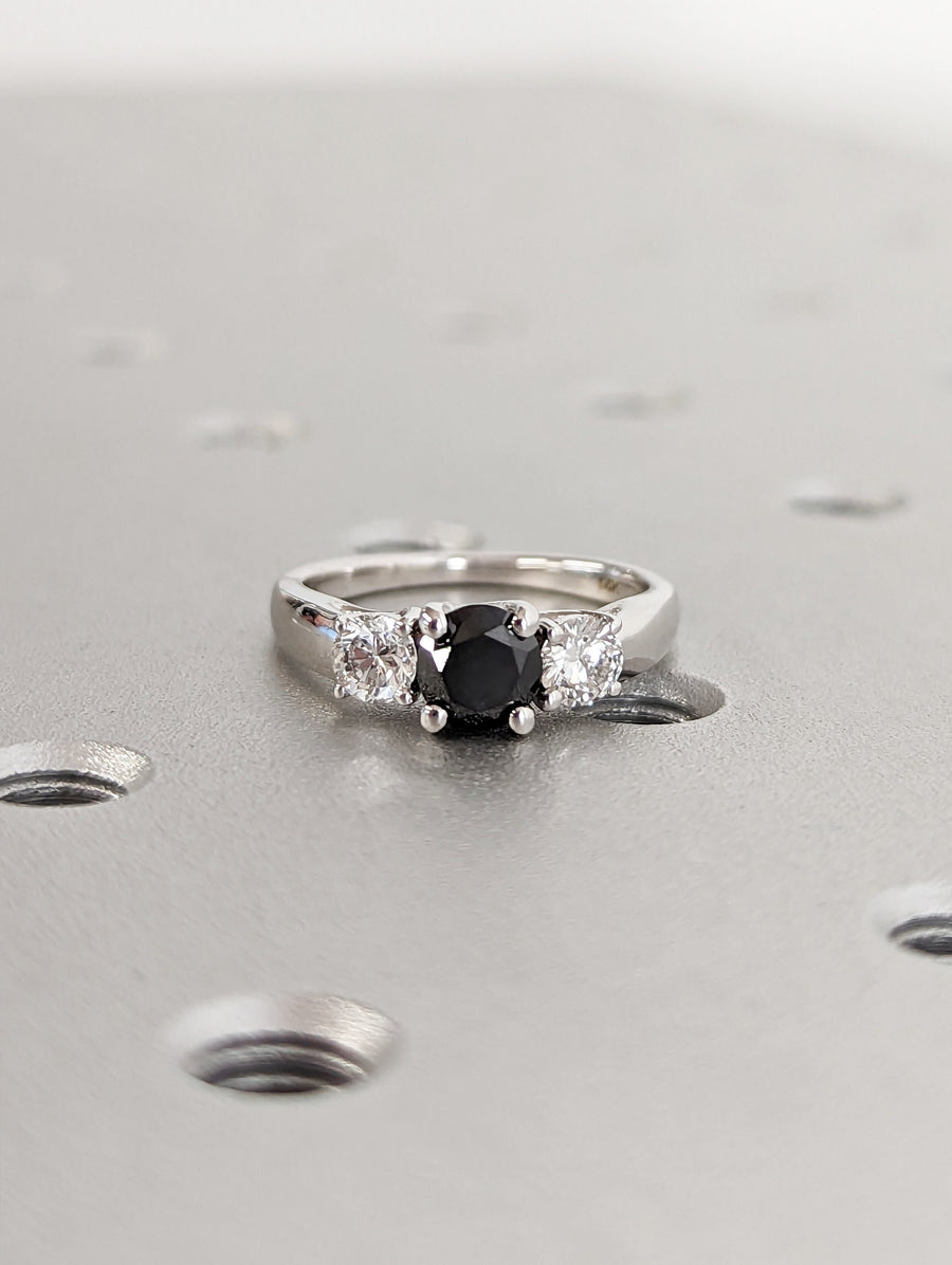 1.0CT Black Round Center Stone Lab Grown 3 Stone Diamond Engagement Ring For Her