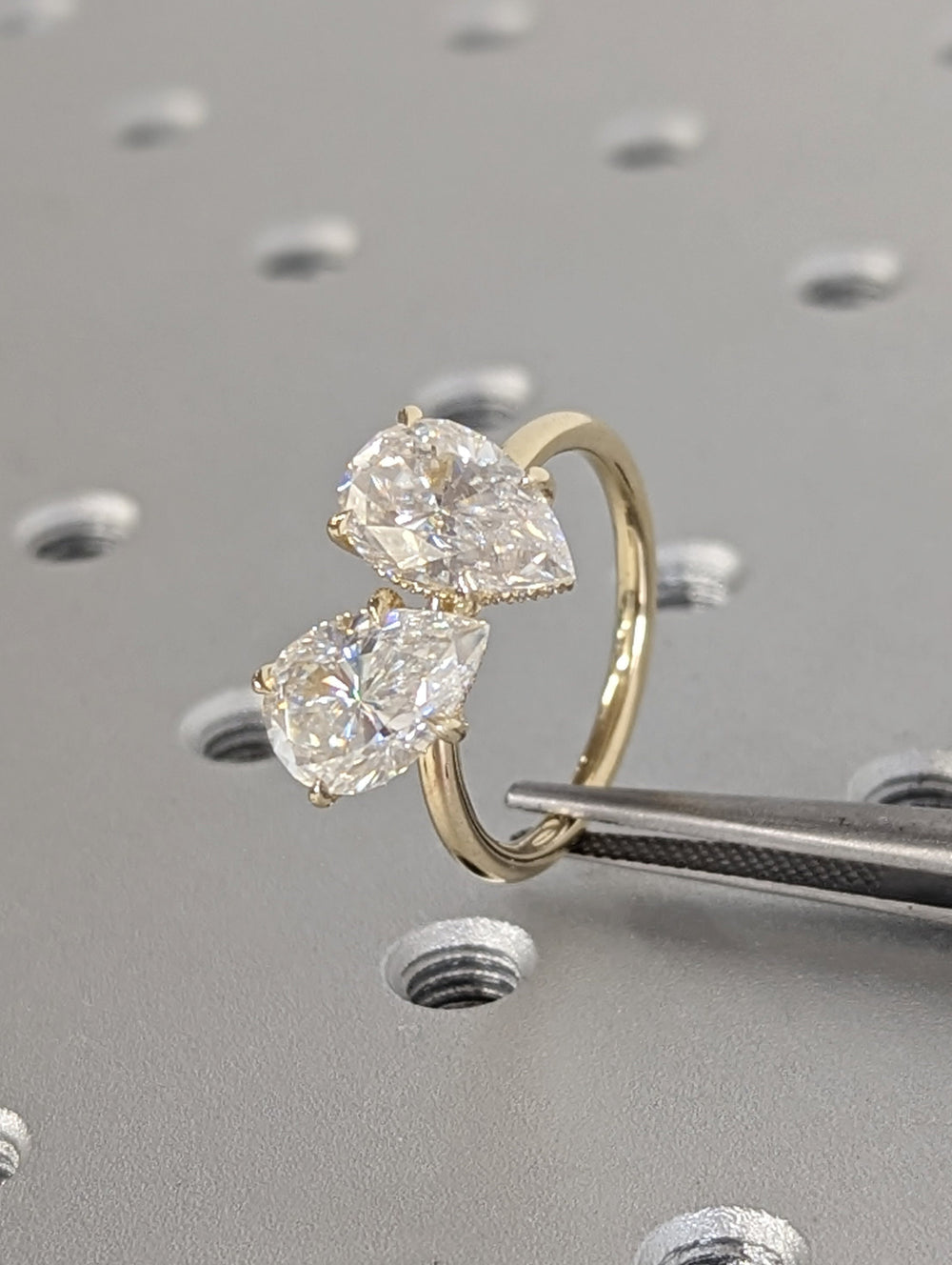 2.50CT Pear Hidden Halo Lab Grown Two Stone Diamond Engagement Ring Pretty Engagement Ring