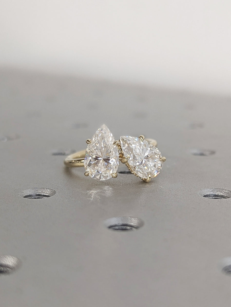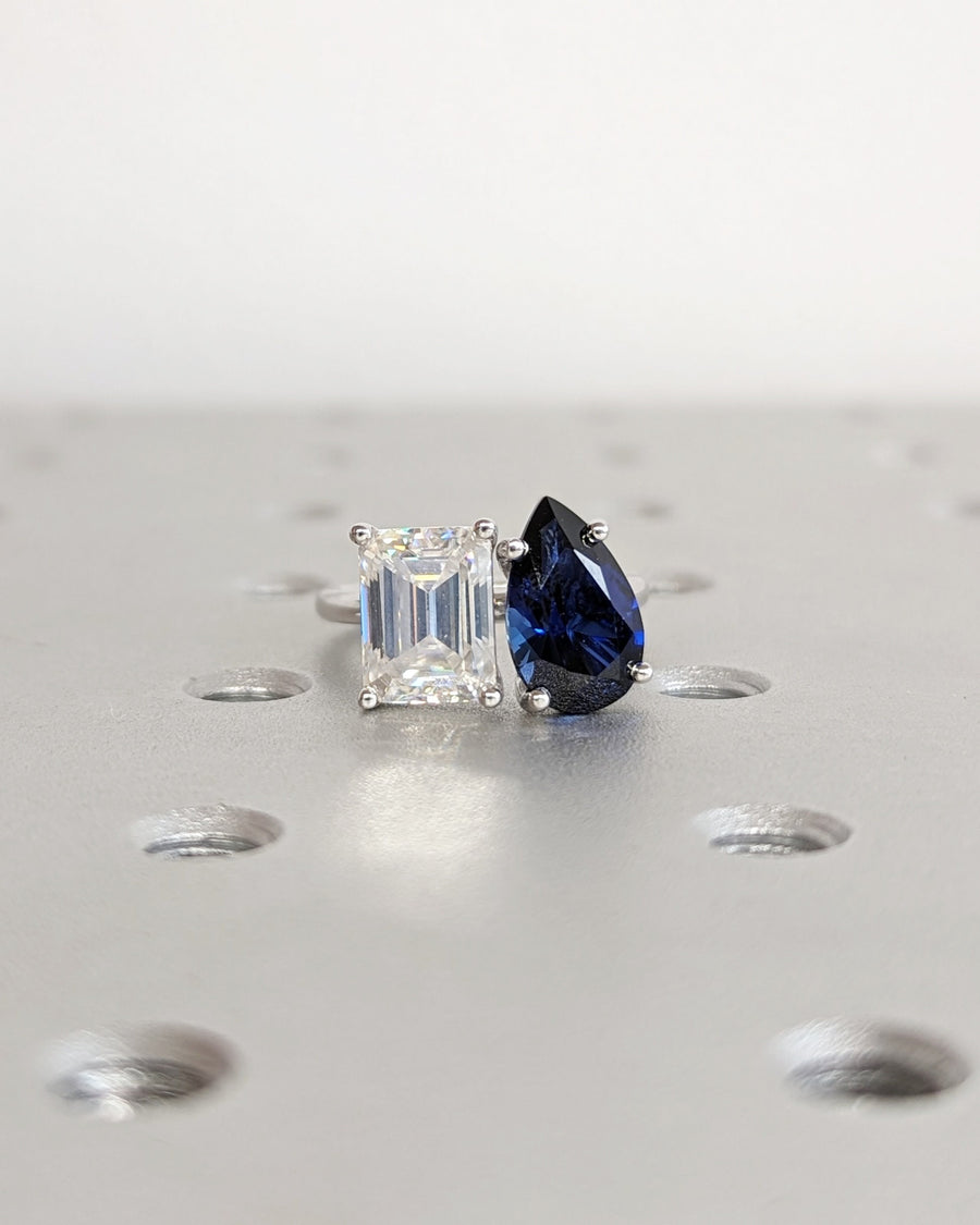 0.5CT Toi et Moi Lab Grown Emerald & Pear Diamond Engagement Ring You & Me Promise Ring