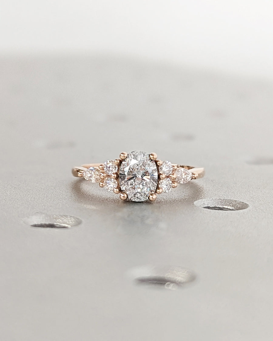 0.50CT Oval Cluster Lab Grown Diamond Engagement Ring Nature Inspired Engagement Rings