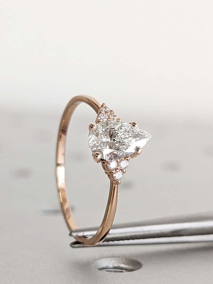1.0CT Pear Cut Cluster Lab Grown Diamond Engagement Ring For Women