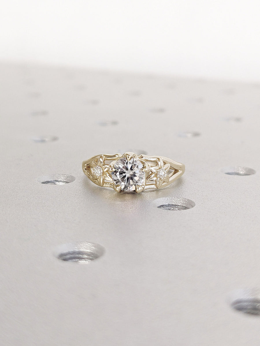1.0CT Round Cluster Lab Grown Diamond Engagement Ring Nature Inspired Engagement Rings