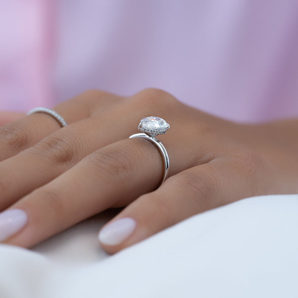 1.0-3.0 CT Pear Lab Grown Diamond Hidden Halo Engagement Ring