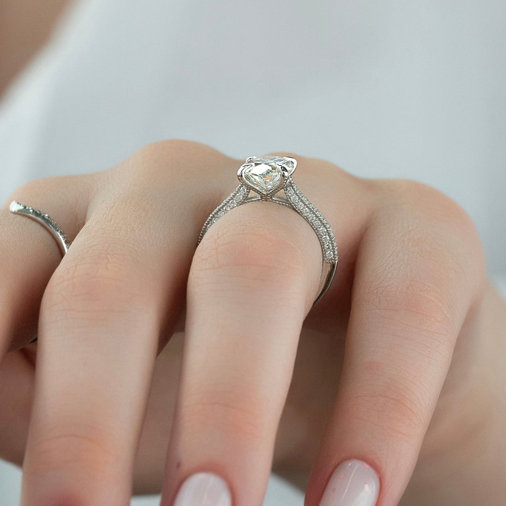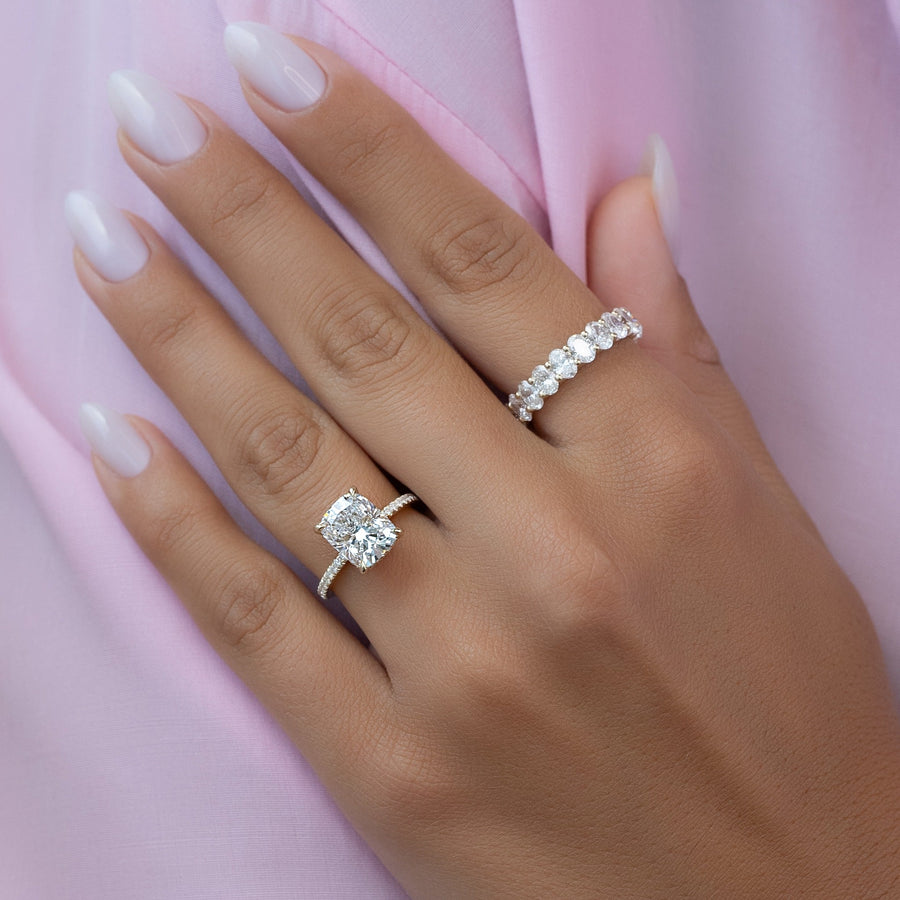 1.0-3.0 CT Cushion Lab Grown Diamond Hidden Halo & Pave Engagement Ring