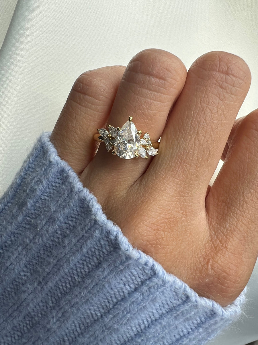 1.0-3.0 CT Pear Diamond Cluster Engagement Ring