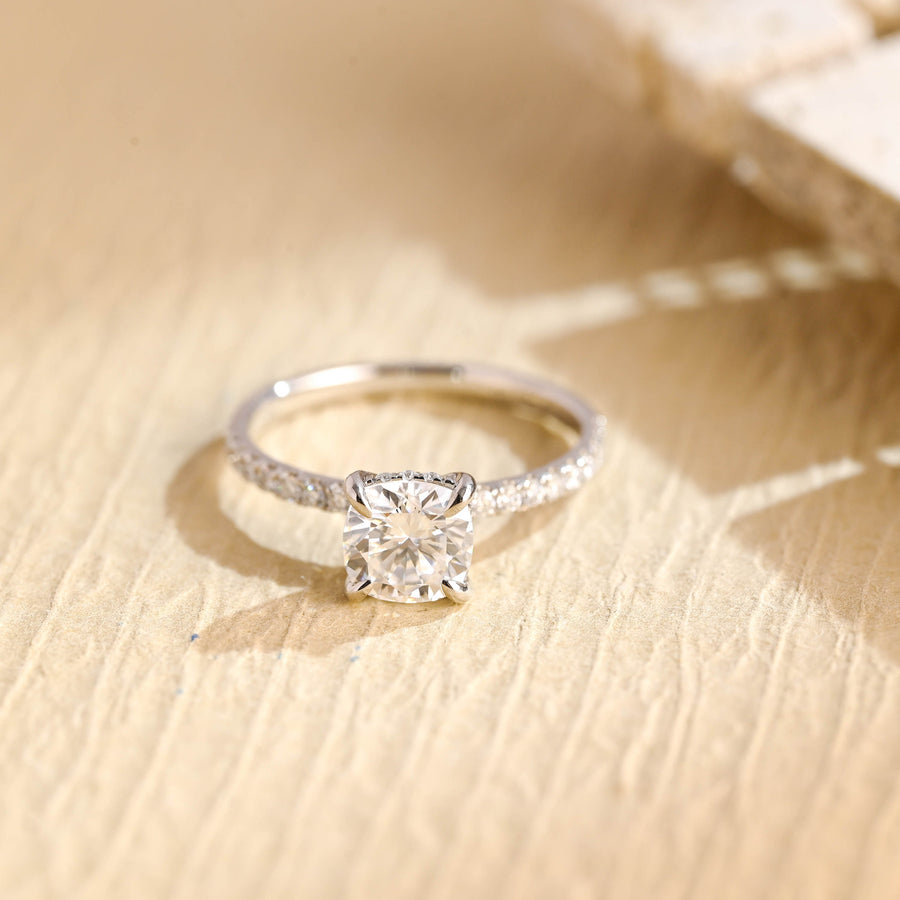 1.50CT Cushion Cut Hidden Halo Lab Grown Diamond Engagement Ring For Women